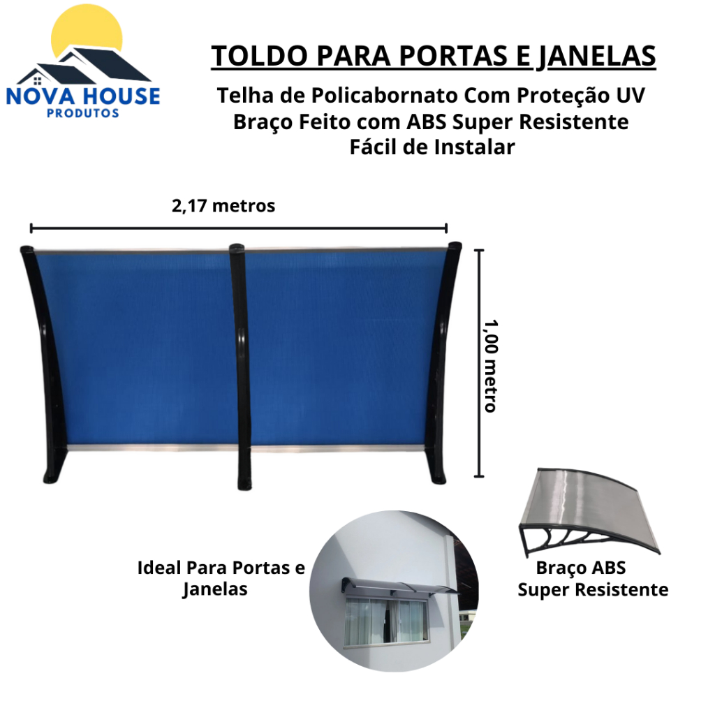 Toldo Cobertura 2,17x100 Condomínios Casa Apartamento Portas Janelas Proteção Chuva e Sol