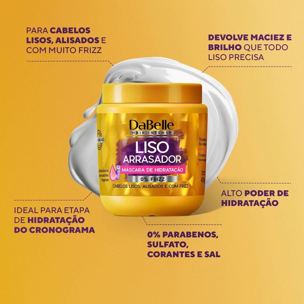 Kit DaBelle Hair Liso Arrasador Shampoo + Condicionador + Selagem+ Máscara 400g (4 produtos)