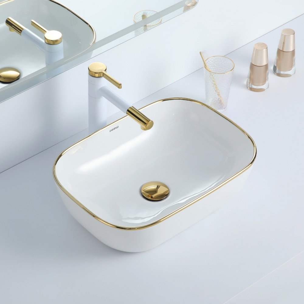 Cuba Deend De Cerâmica DoratoLuce Para Banheiro 45x32x13cm