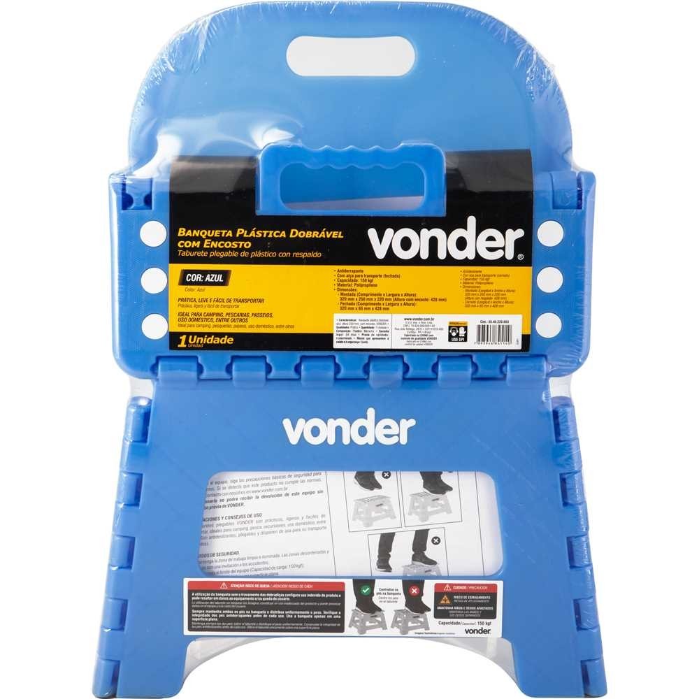 Banqueta Plástica Dobrável Azul 220 Mm Encosto Vonder