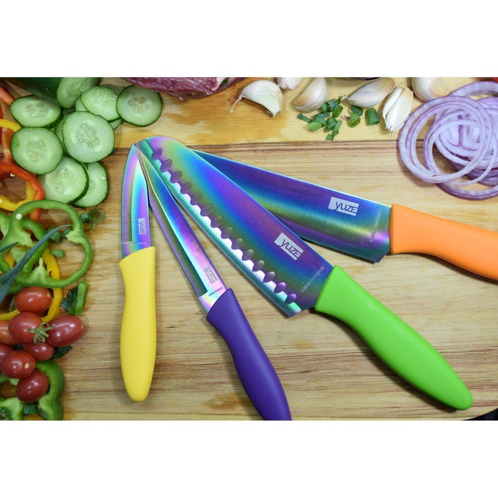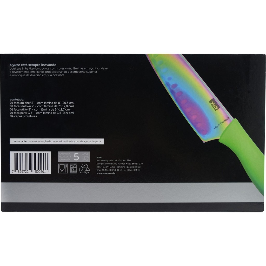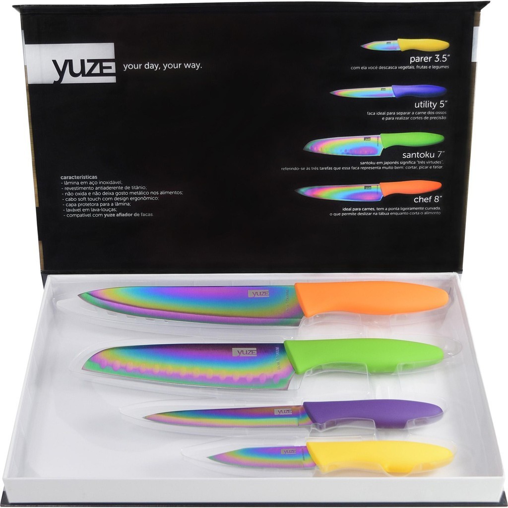 Kit De Facas Linha Titanium Color 04 Pecas Yuze Antiaderente e Antioxidante