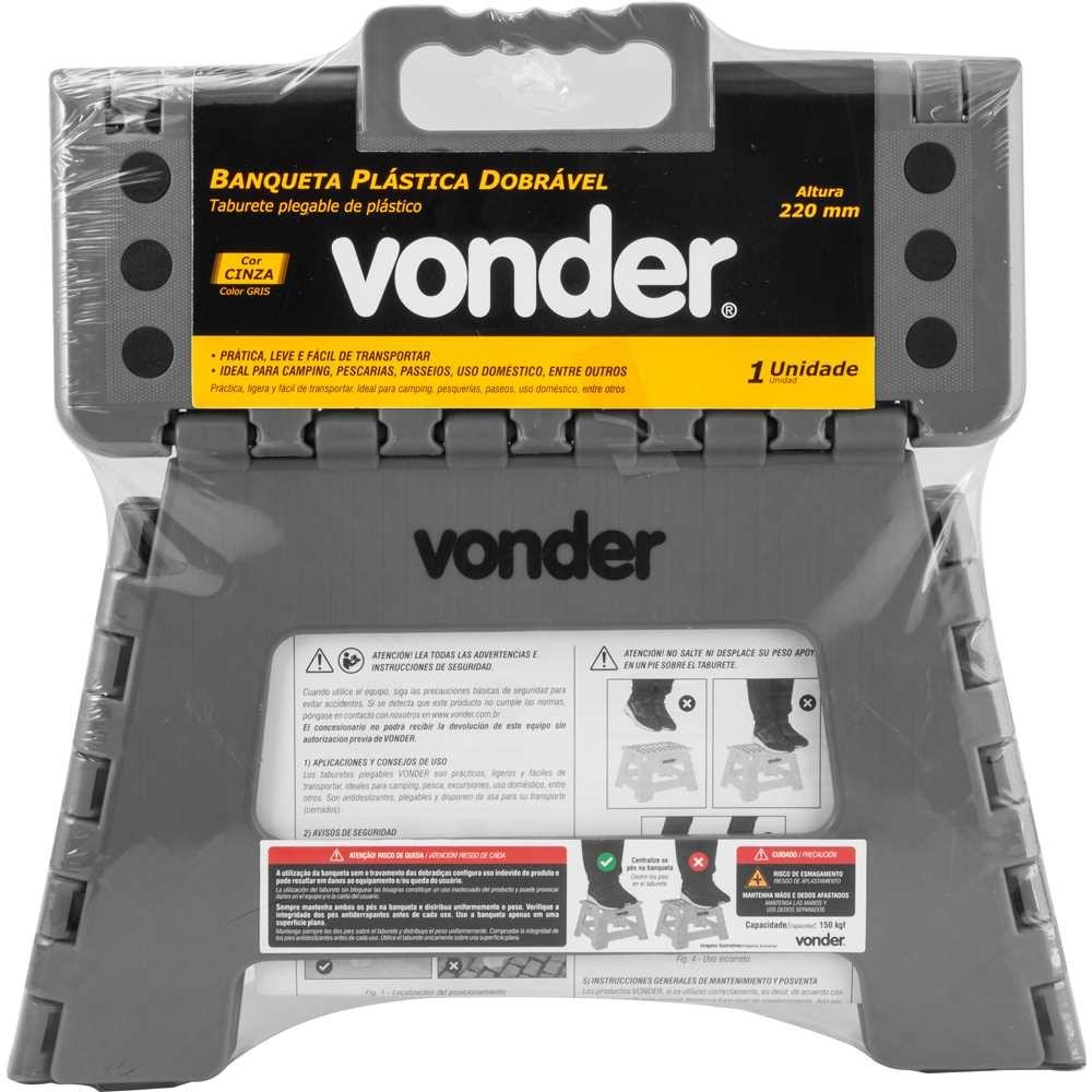 Banqueta 22cm Banco Dobrável Plástico Multiuso Camping Pesca Portatil Retratil Cinza - Vonder