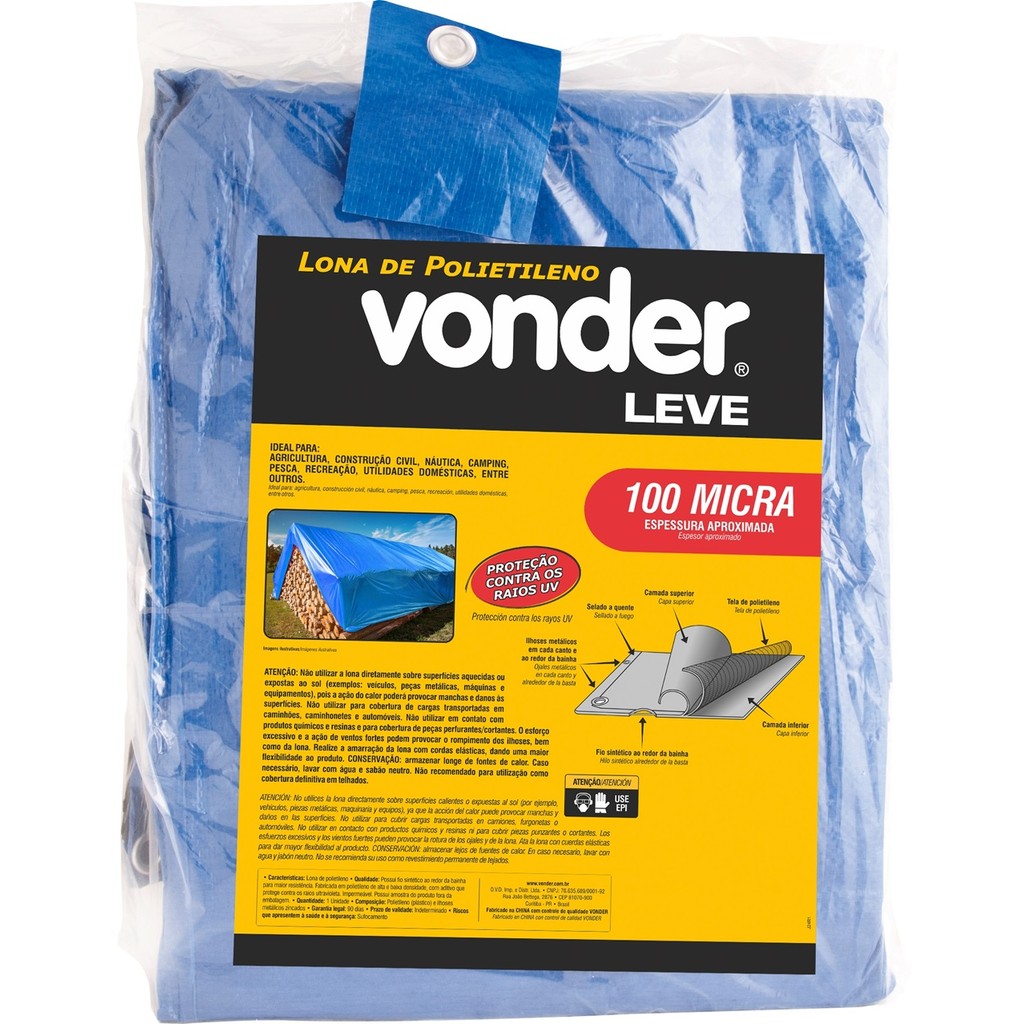 Lona de Polietileno Azul 2m x 2m 100 Micras Vonder Leve