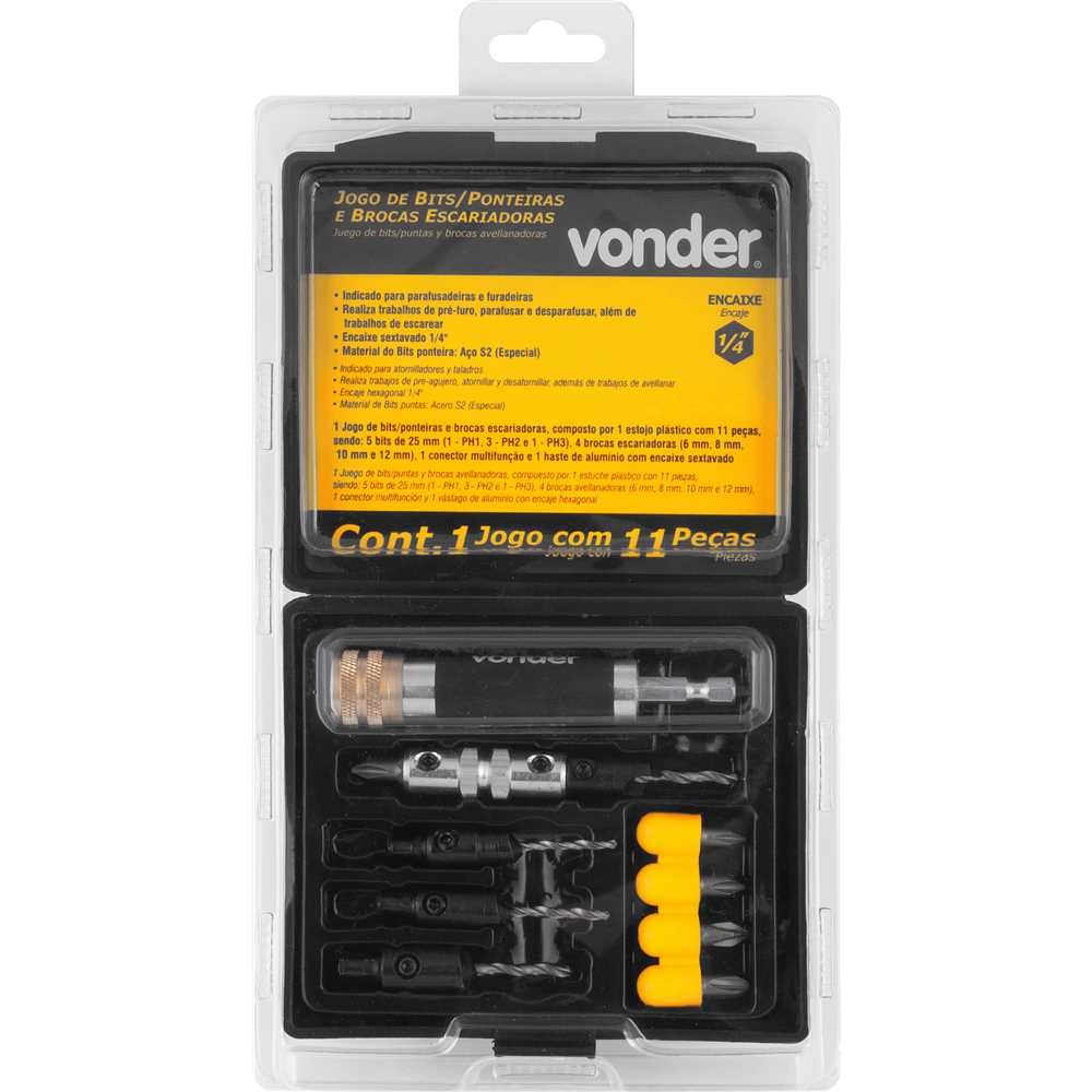 Jogo De Ponteiras E Brocas Escareadoras 11 Peças 1/4 Vonder