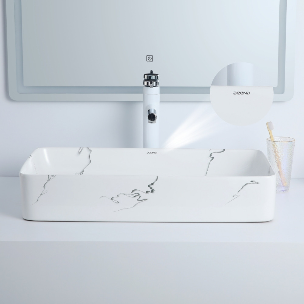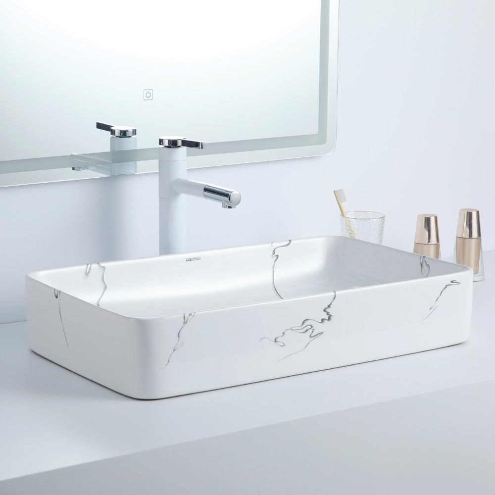 Cuba Deend De Cerâmica MarmoBianco Para Banheiro 62x35x11cm