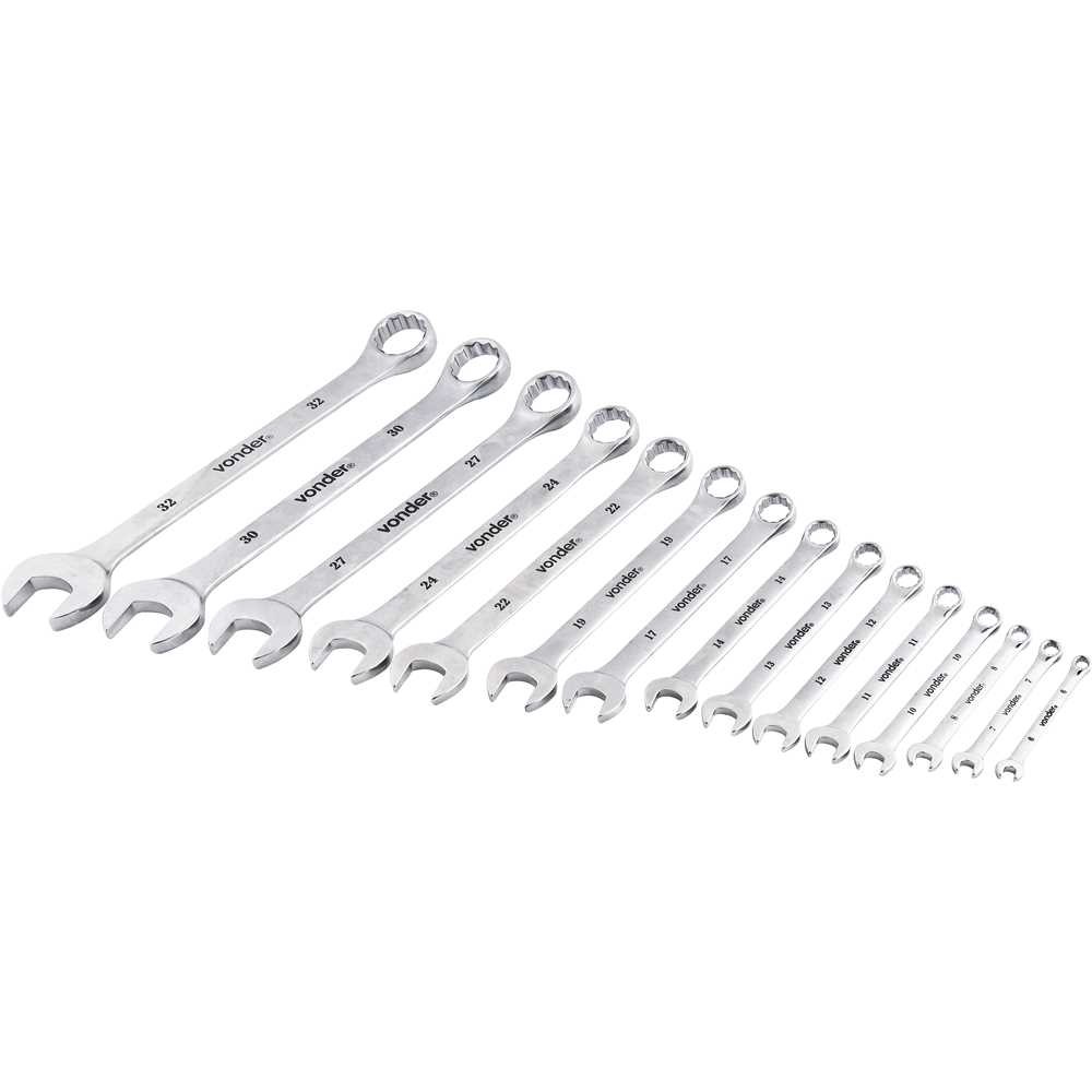 Jogo De Chaves Combinadas 6 A 32 mm Aço Cromo Kit com 15 Peças Vonder