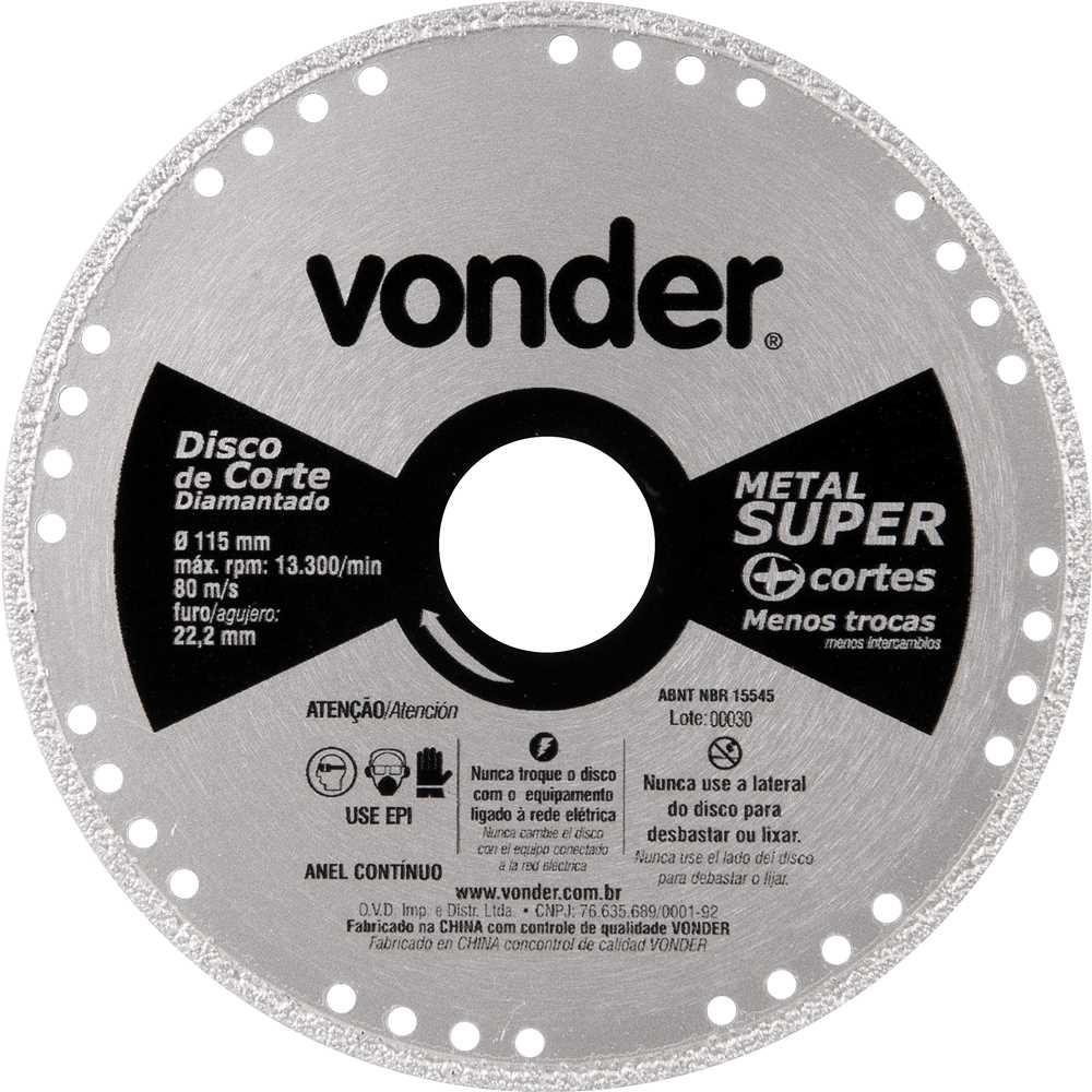 Disco De Corte Diamantado Contínuo Metais 115 Mm Vonder