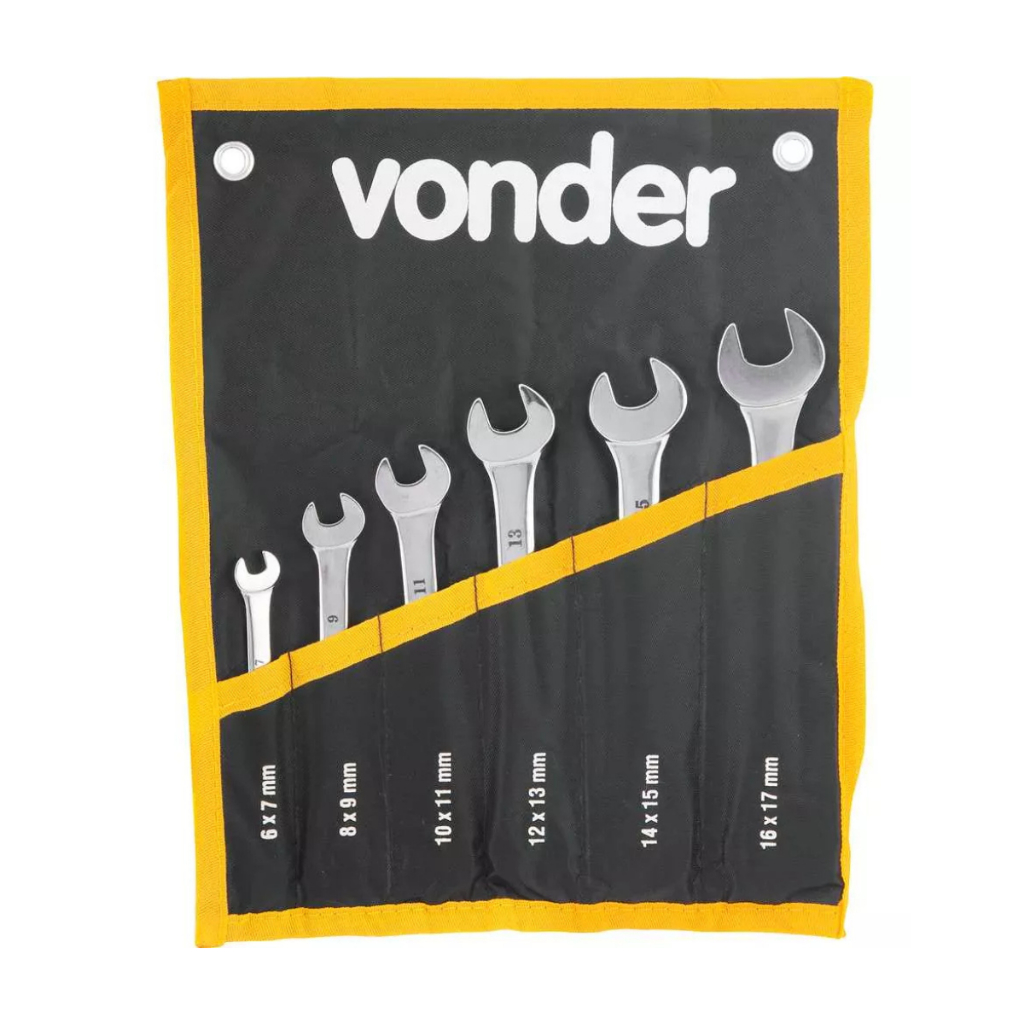 Jogo De Chaves Fixas 6 Mm A 17 Mm Cromadas Kit com 6 Peças - Vonder