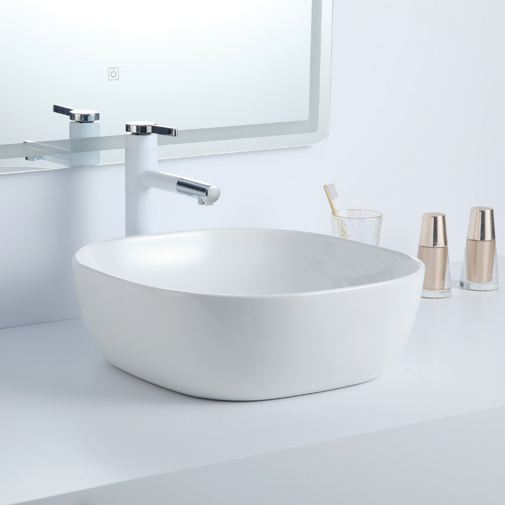 Cuba Deend De Cerâmica Quadrina Ovale Para Banheiro 42x42x13cm