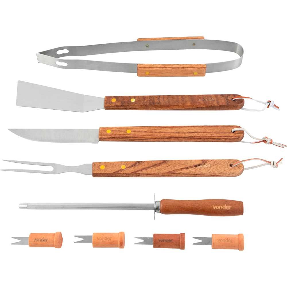 Kit Churrasco Churras Completo em Aço Inox com 10 Peças Vonder