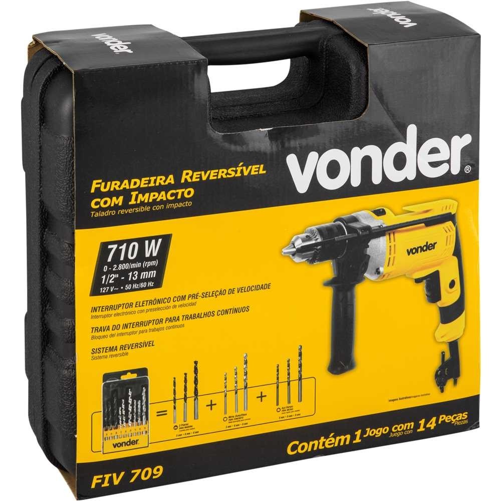 Furadeira Impacto 1/2' Kit Jogo 9 Brocas e Maleta Fiv 709 127 V Vonder