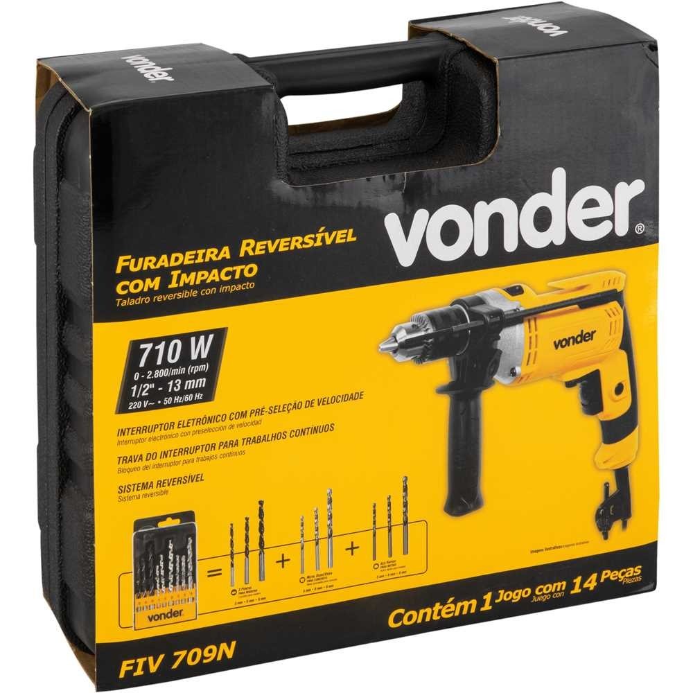 Furadeira Impacto Elétrica 1/2' Maleta com Jogo 9 Brocas Fiv 709 220 V Vonder