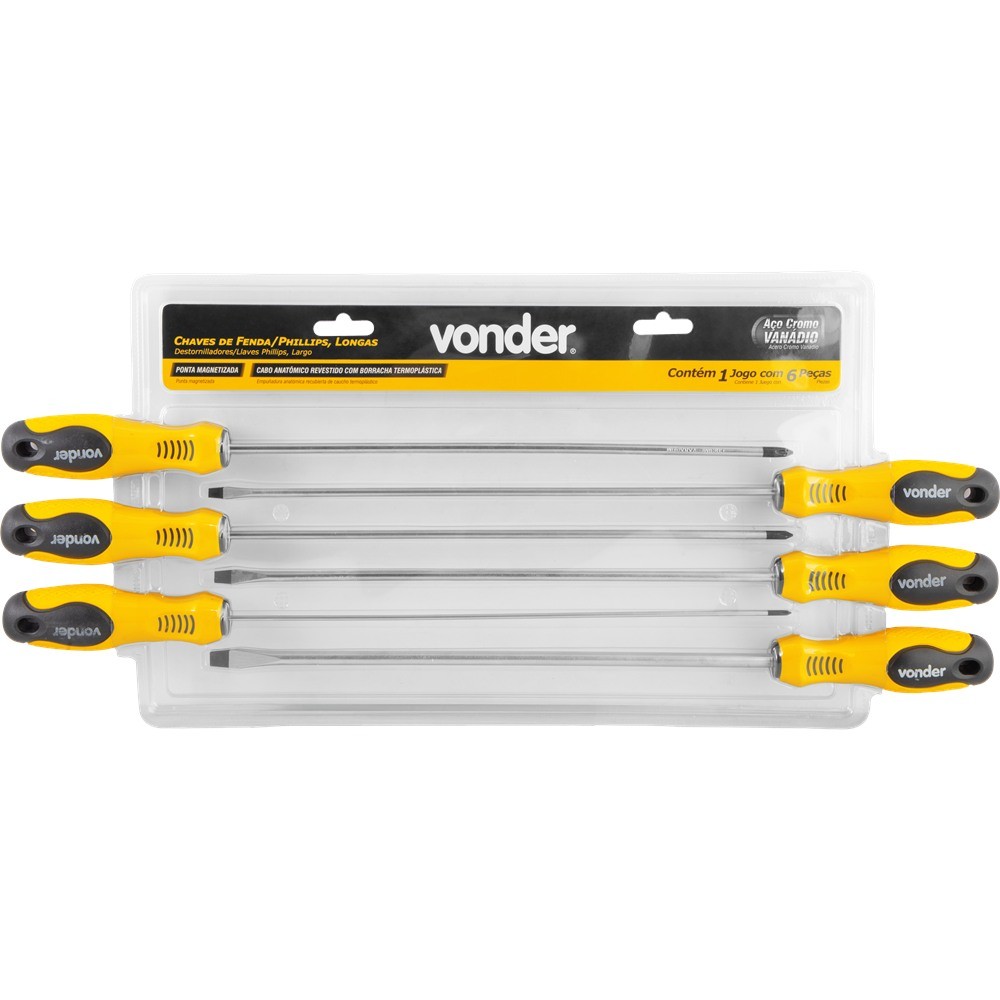 Chaves Fenda Phillips Longas JG 6 Peças CRV Vonder