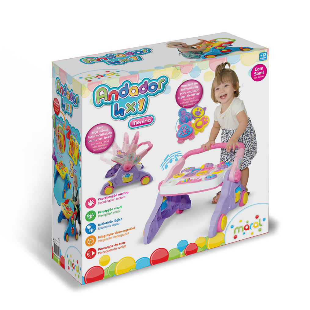 Andador Infantil 4 Em 1 Para Bebê Educativo 3006 Maral Rosa
