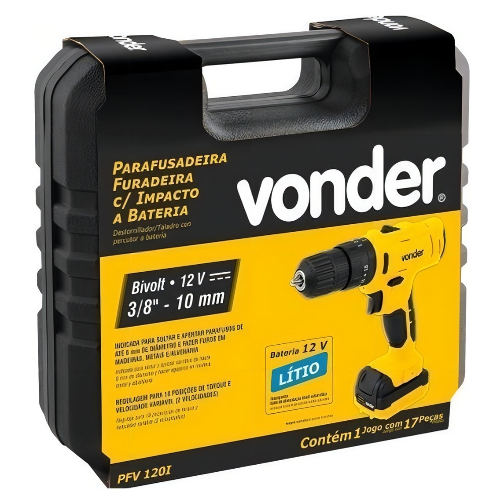 Kit Parafusadeira Furadeira de Impacto + 2 Baterias Vonder