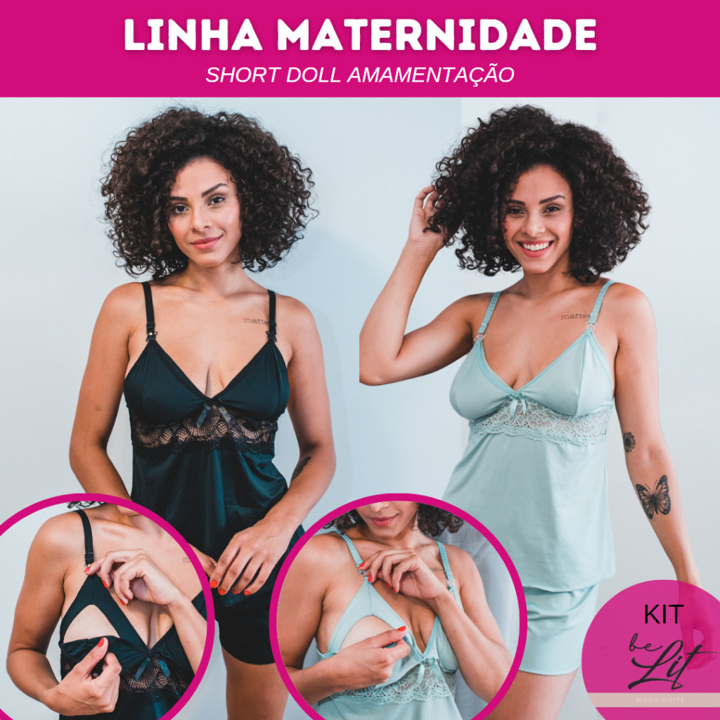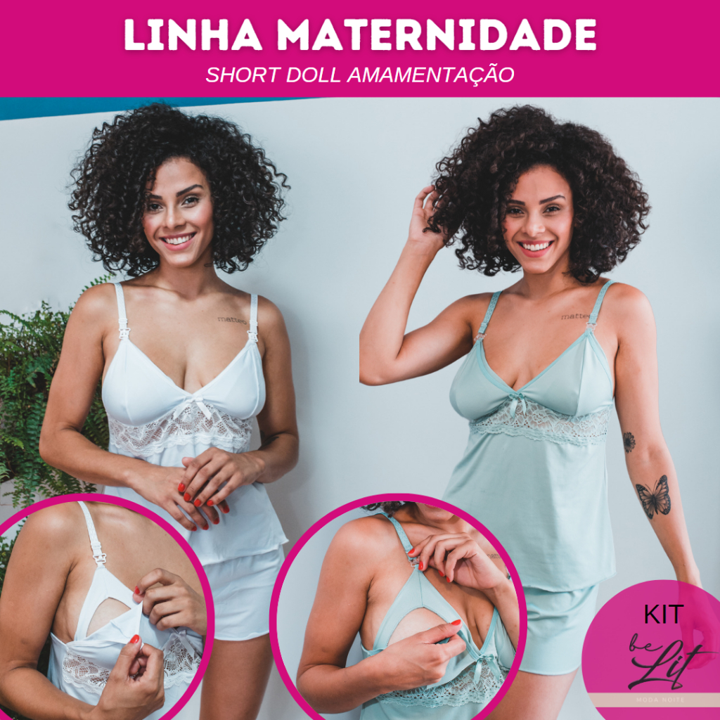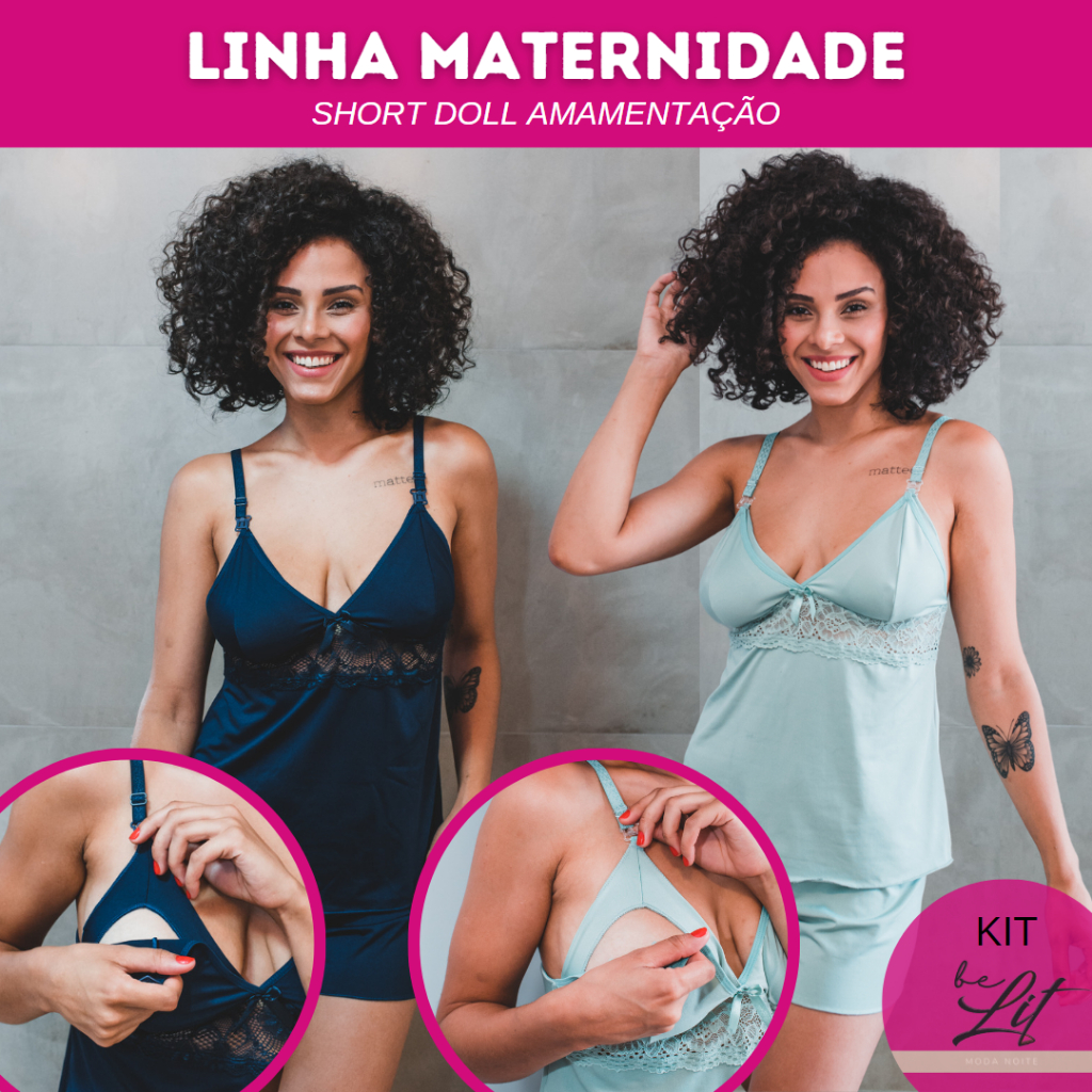 Kit 2 Short doll Amamentação com Detalhe em Renda Saída Maternidade Grávida Gestante Lactante Pijama Confortável BeLIT Linha Noite