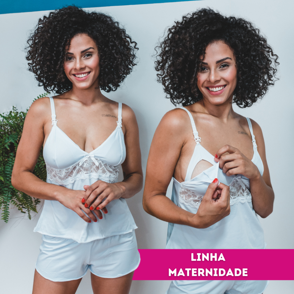 Baby Doll Amamentação Conforto com Renda Maternidade Gestante Roupa de Dormir Pijama BeLIT Linha Noite - 1702