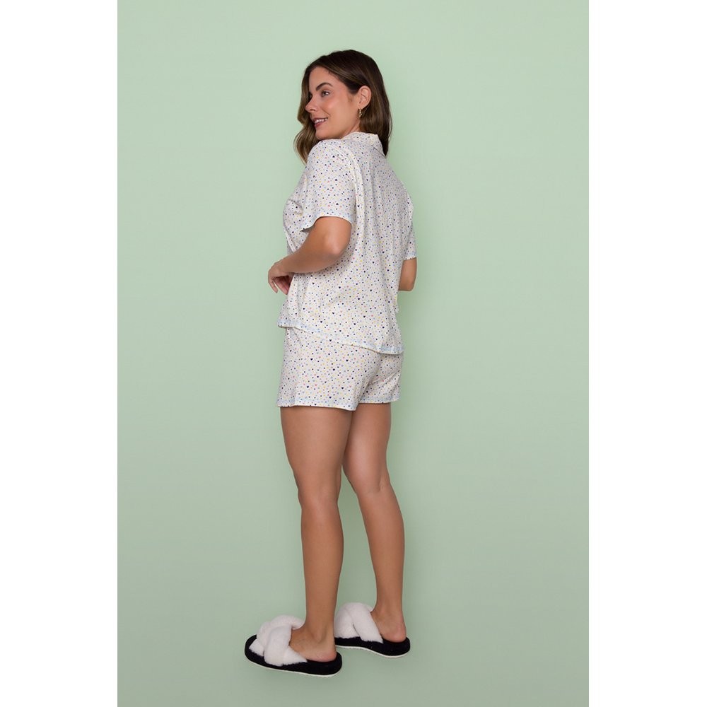 Pijama Americano Blogueirinha Manga Curta 100% Algodão Corações