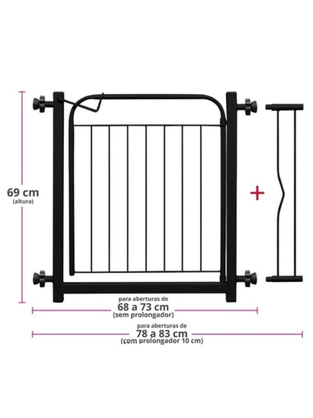 Portão Segurança Grade Pet Proteção 69cm Cachorro Cãe Portátil Aramado Cercado Extensor Prolongador