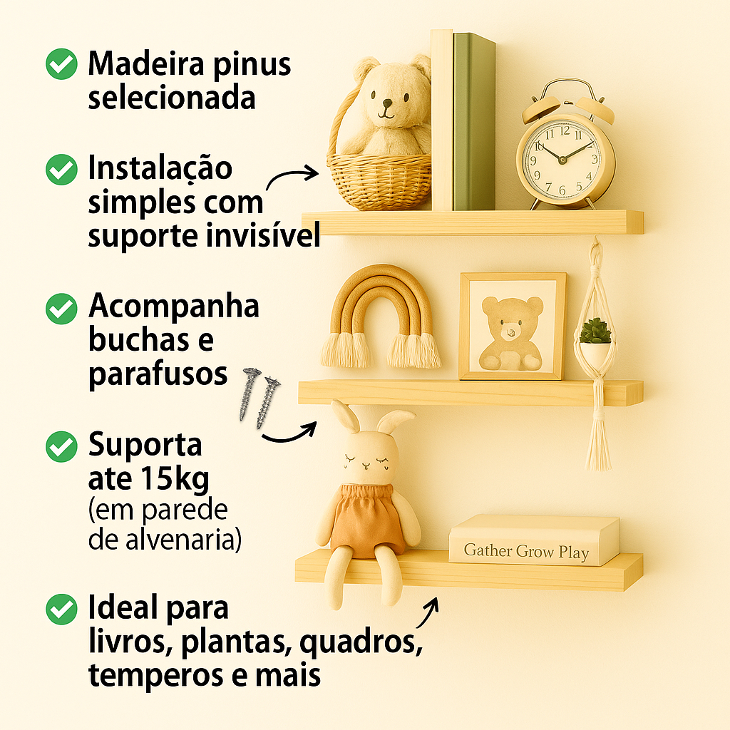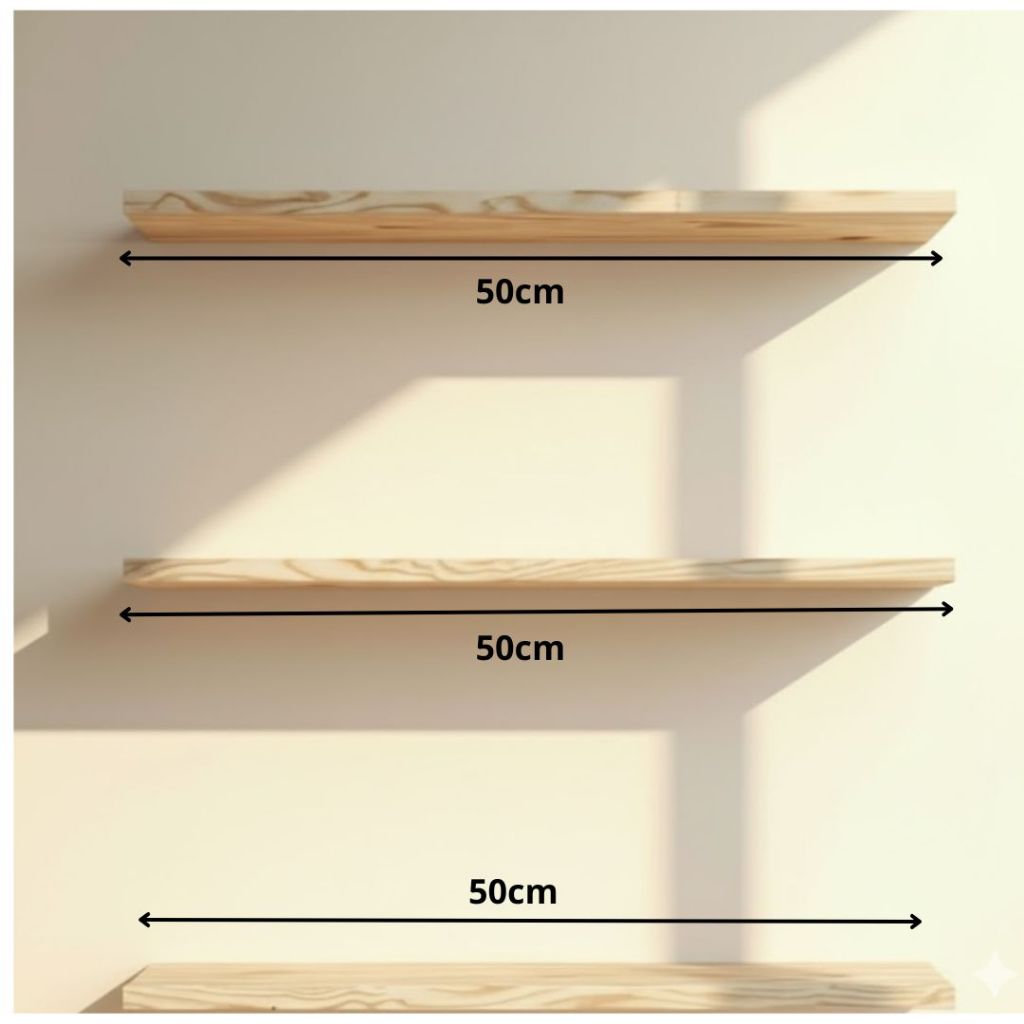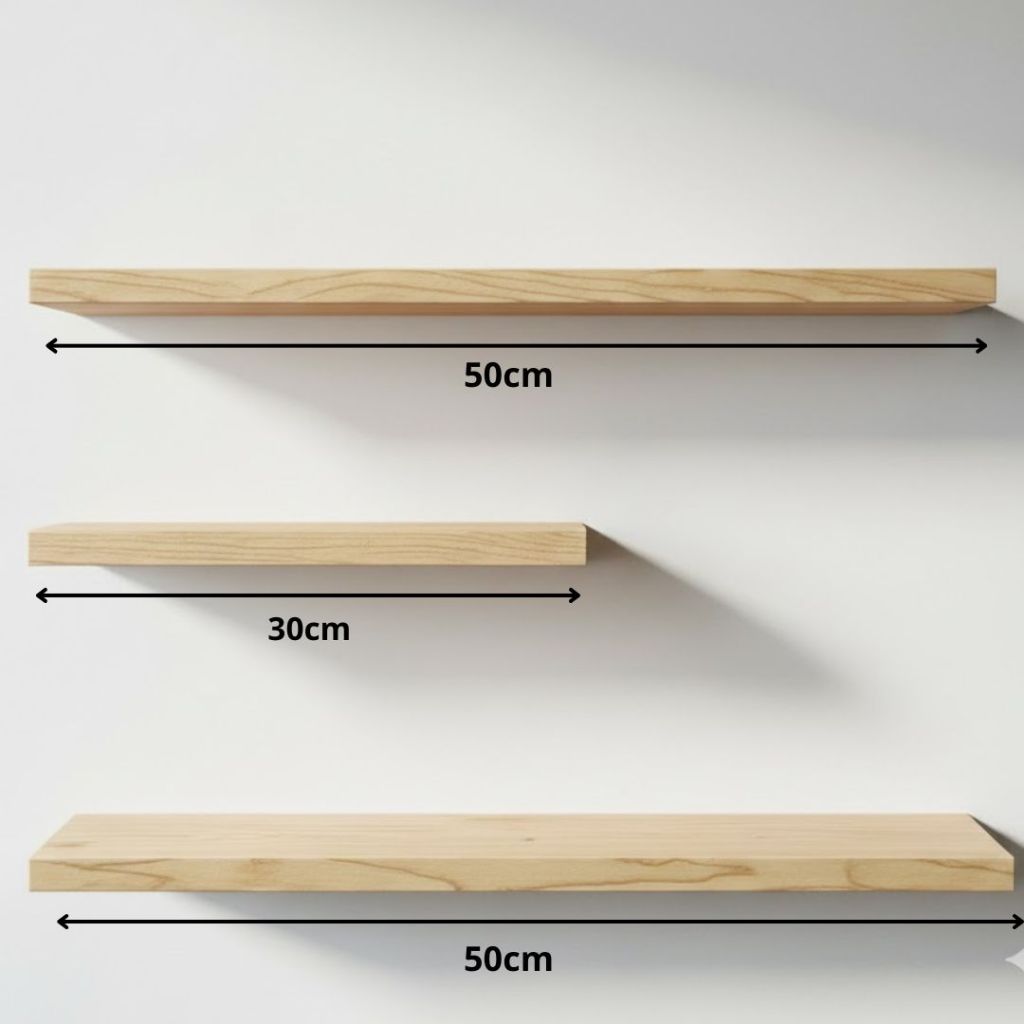 Kit 3 prateleiras 10x50cm/30cm em Madeira Maciça Natural Pinus ideal paraQuartos Banheiros Salas Escritórios