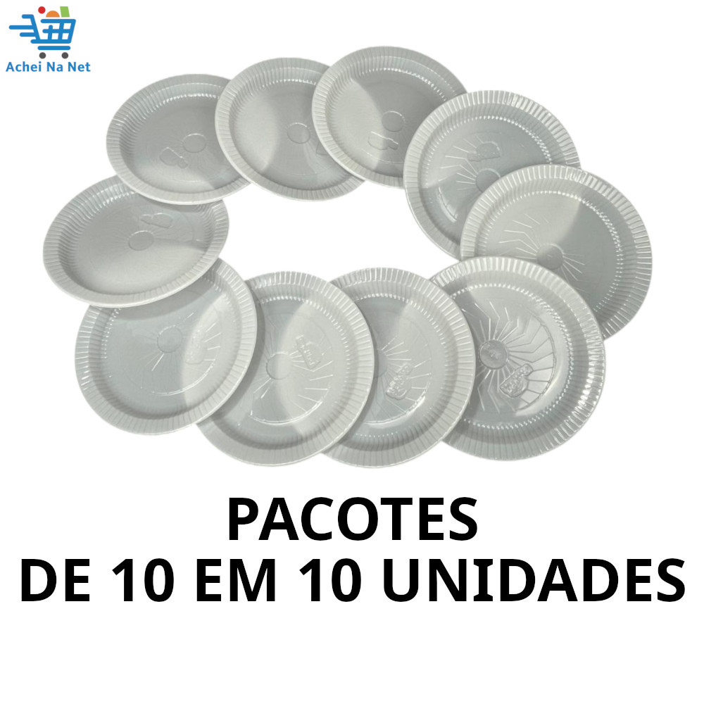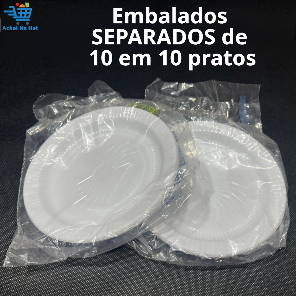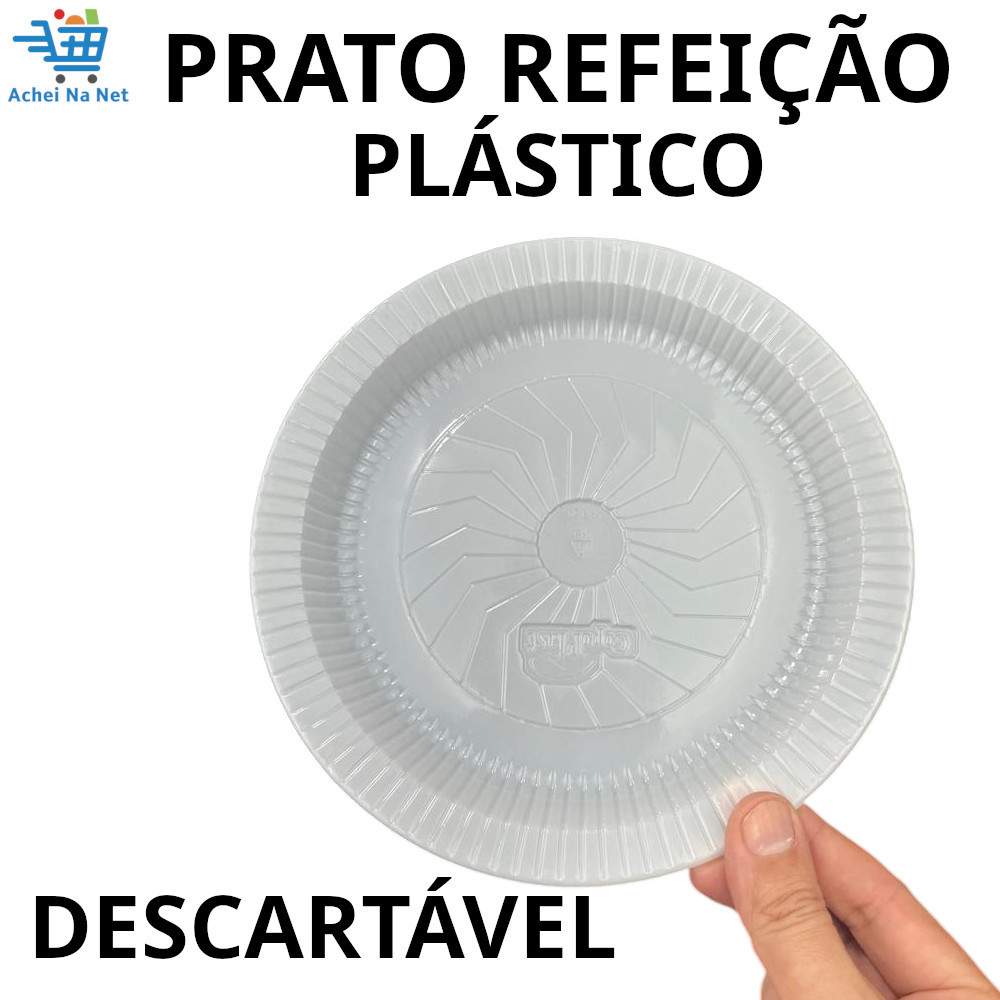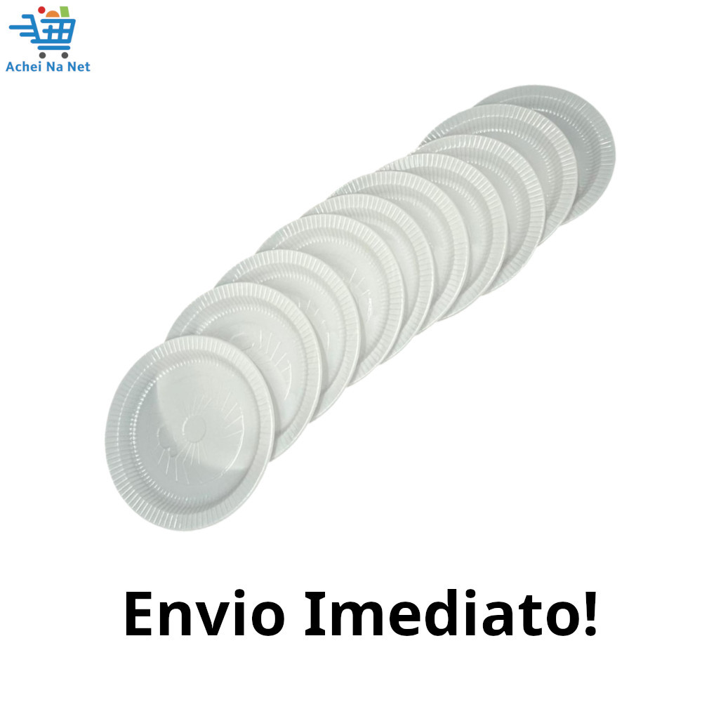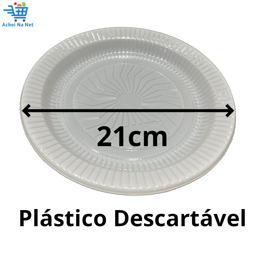 Kit Pratos Refeição Plástico Descartável 21cm Raso Branco Almoço Jantar Churrasco Festas