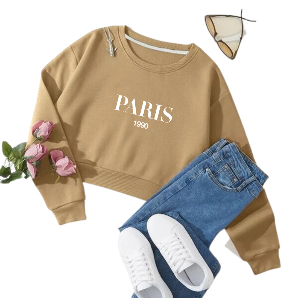 Cropped Moletom Paris 1990 Gola Careca Moda Feminina