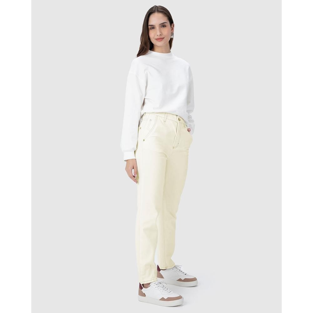 Calça Mom Feminina Bolso Faca Em Sarja 100% Algodão