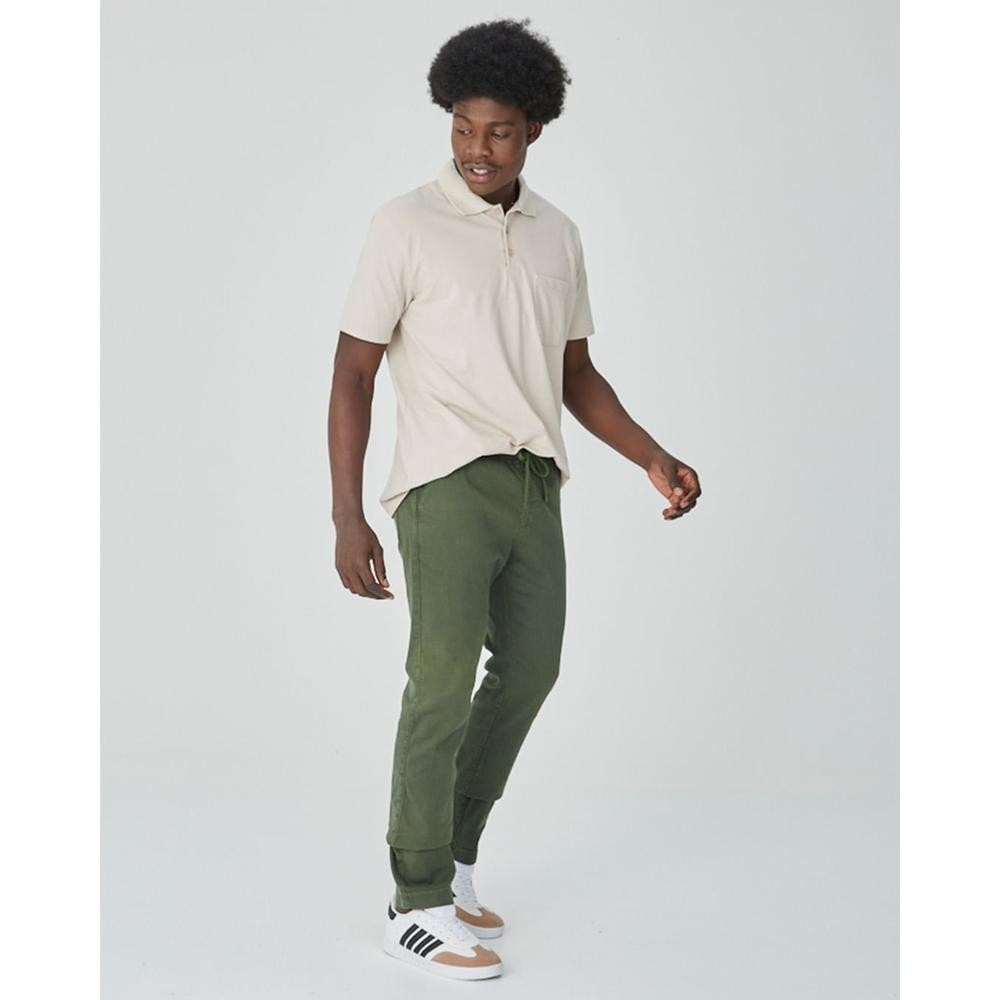 Calça Chino Masculina Cadarço Frontal Em Sarja Com Elastano