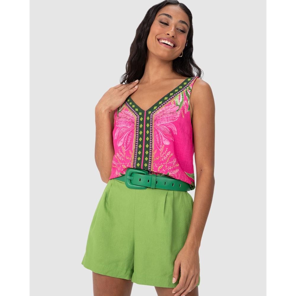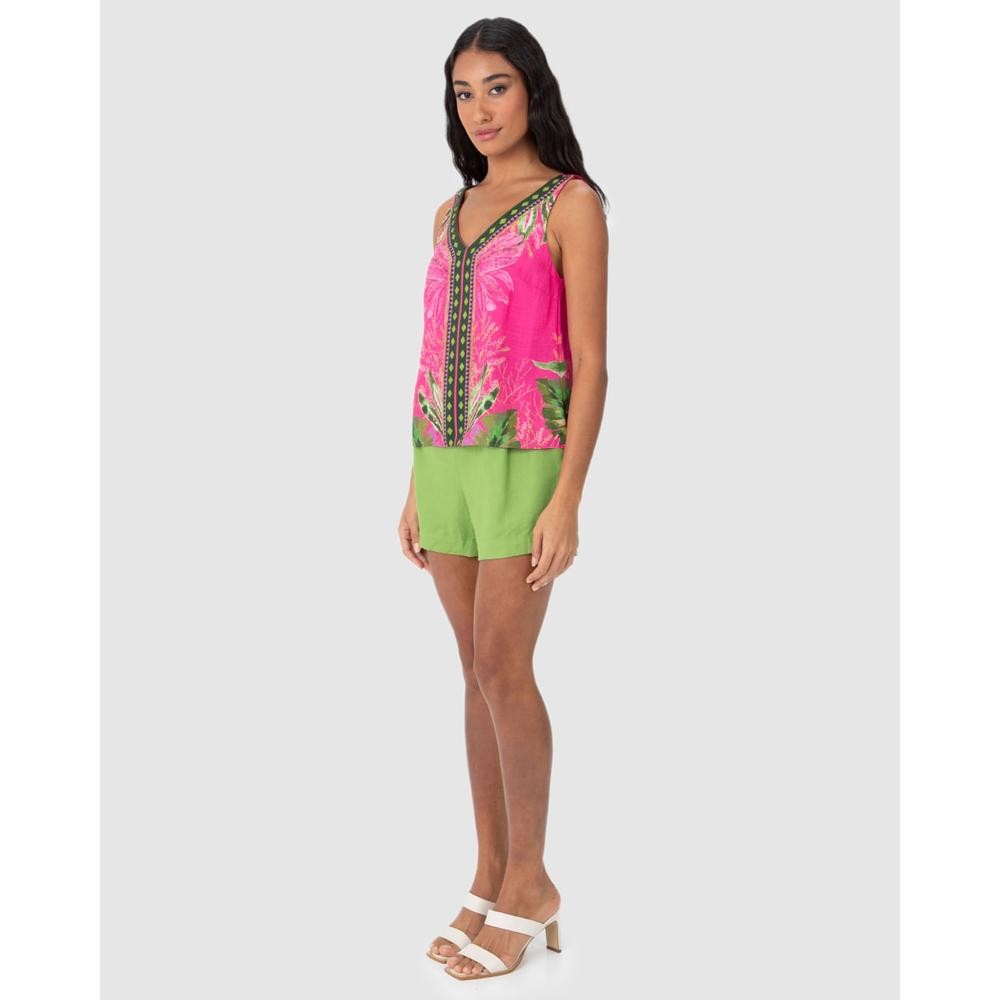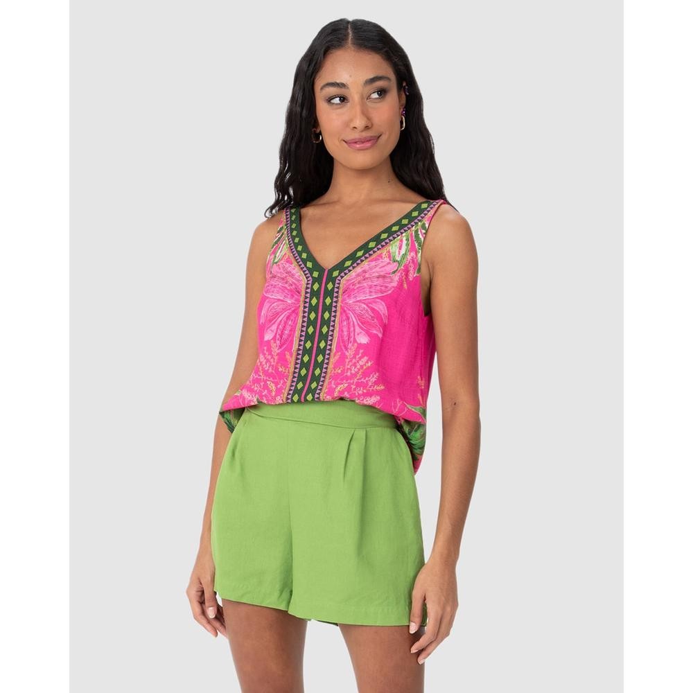Regata Ampla Feminina Decote V Estampada Em Viscose