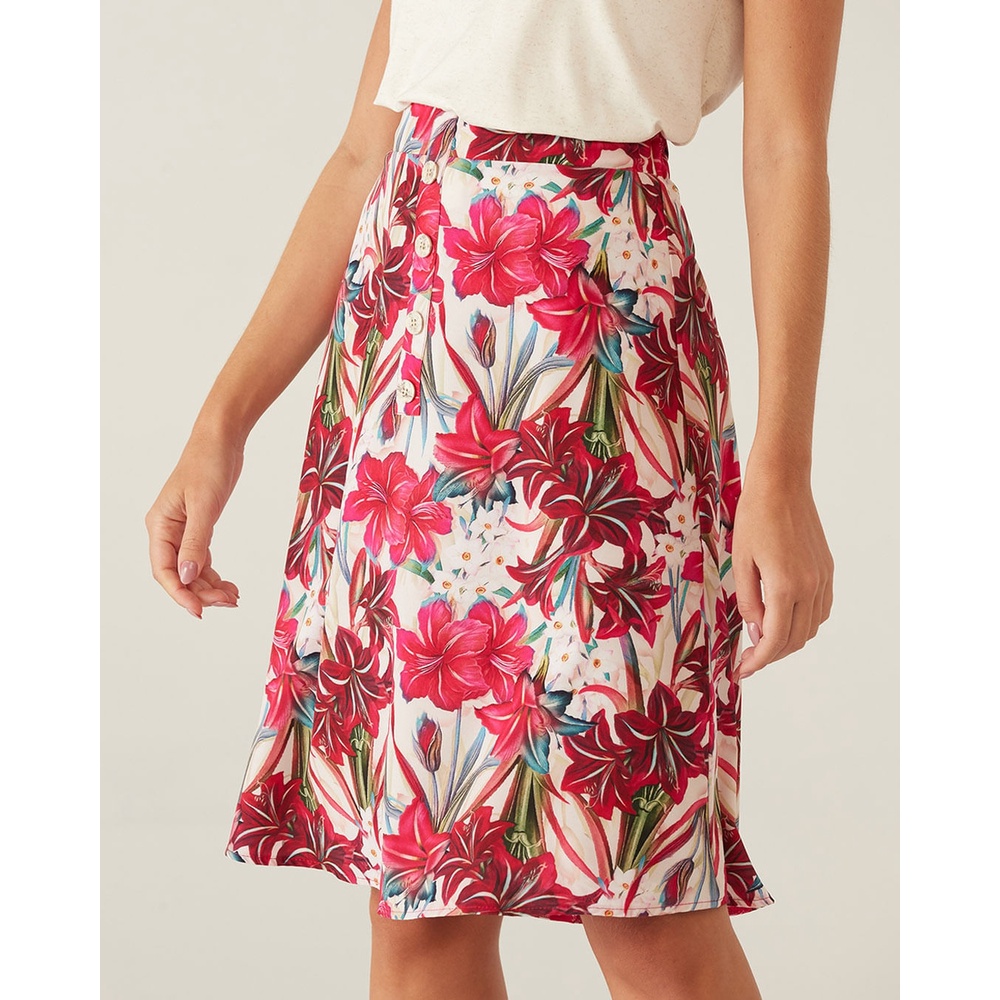 Saia Midi Floral Em Crepe Malwee