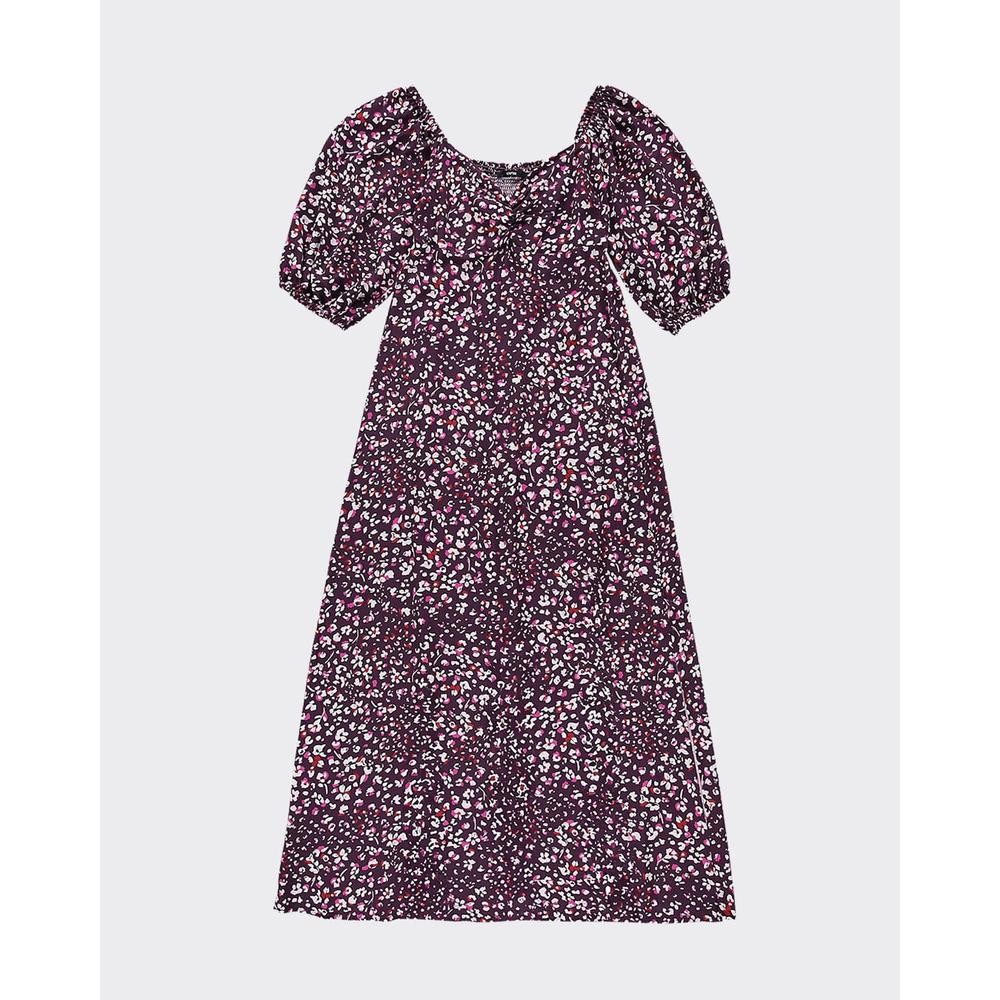 Vestido Longo Feminino Floral Manga Balonê Em Viscose - ENFIM