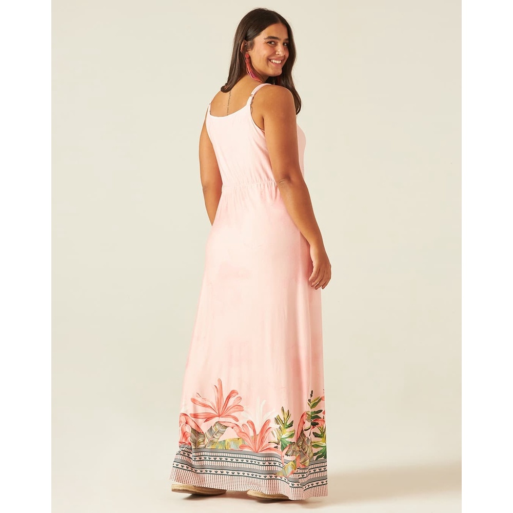 Vestido Feminino Plus Size Midi Alças Finas Em Viscose Stretch