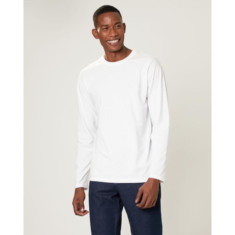 Camiseta Básica Masculina Manga Longa Em Meia Malha