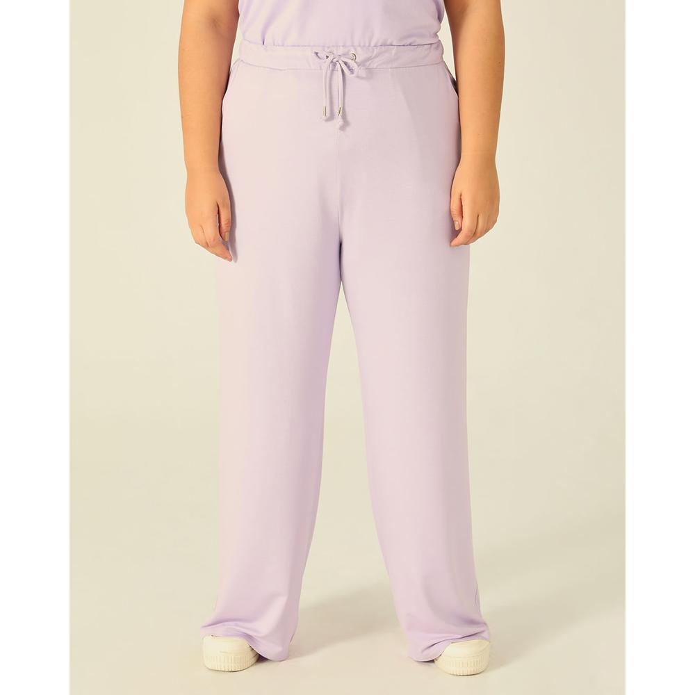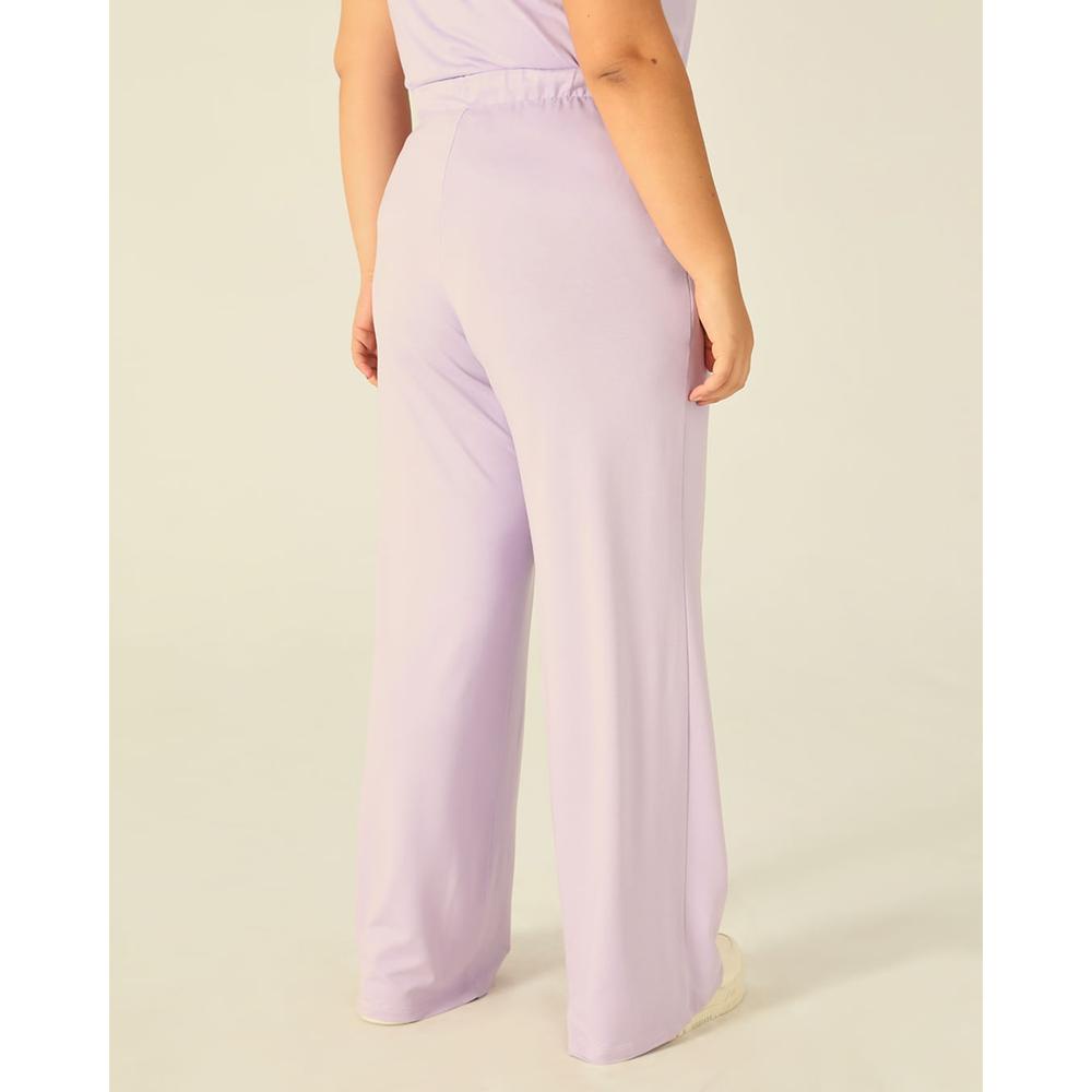 Calça Básica Feminina Plus Size Wide Leg Moletinho De Viscose