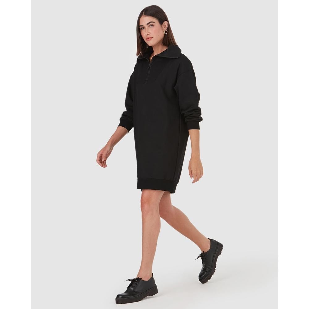 Vestido Feminino Decote Com Zíper Em Moletom Flanelado