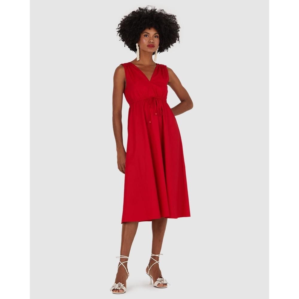 Vestido Midi Feminino Busto Com Amarração Em Tricoline