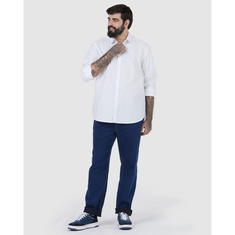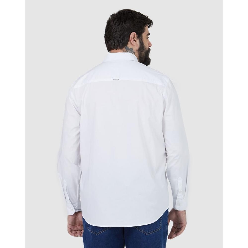 Camisa Básica Masculina Plus Size Manga Longa Em Tricoline