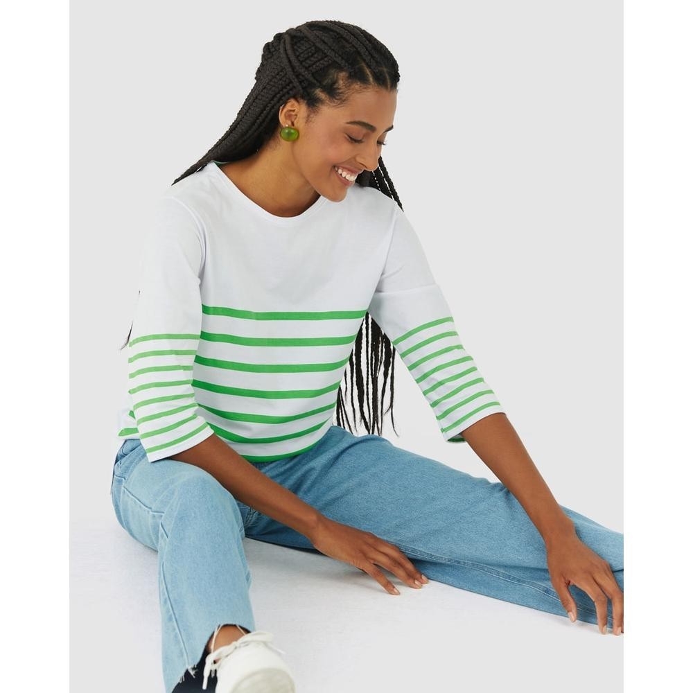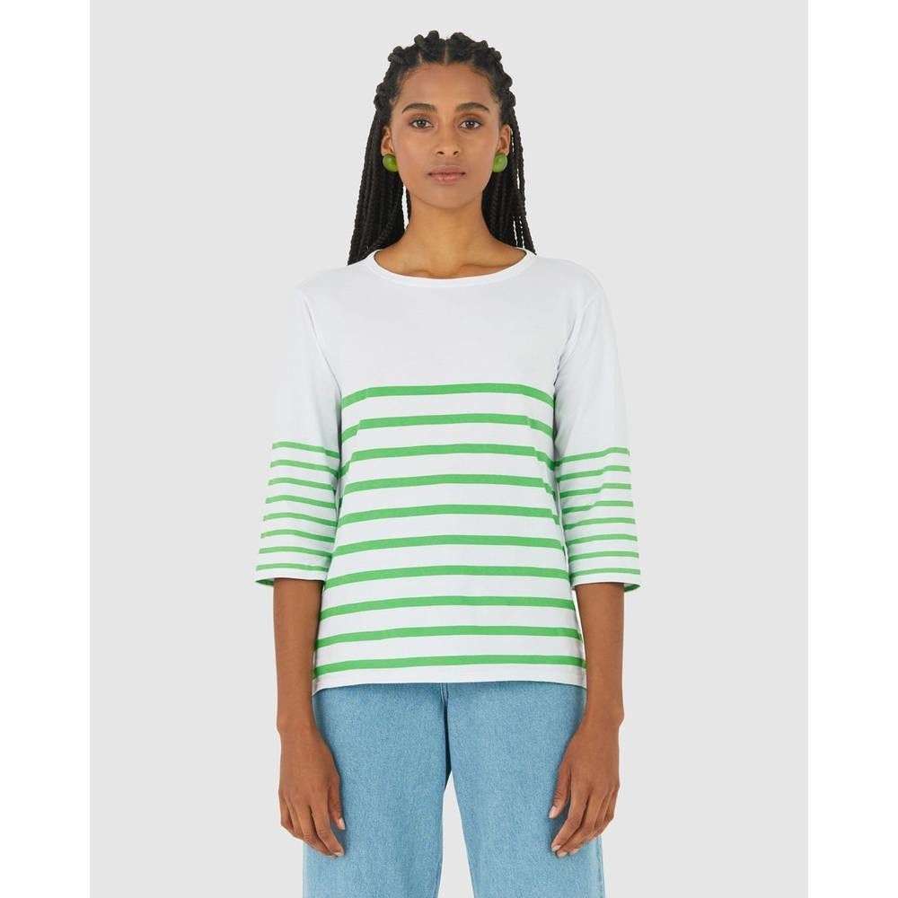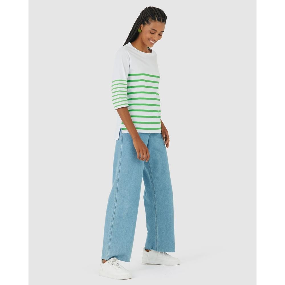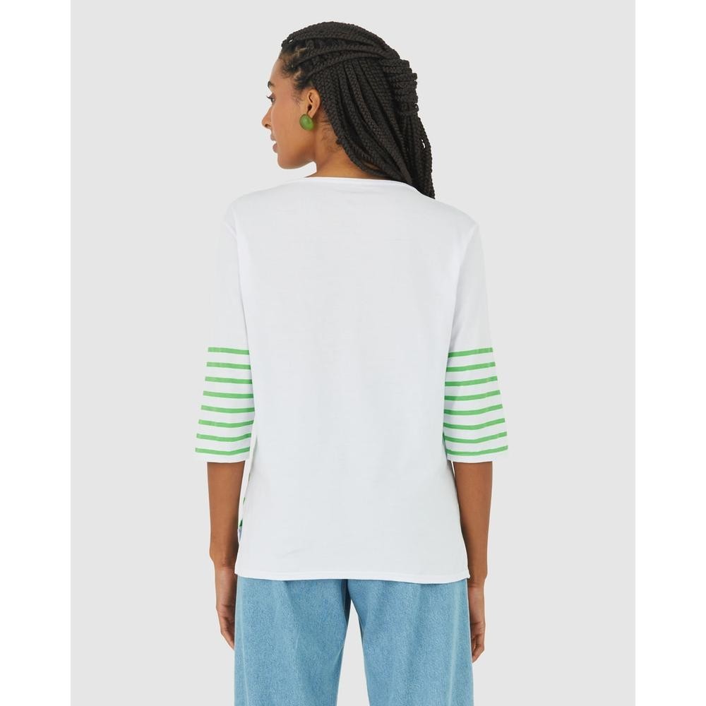Blusa Listrada Feminina Manga 3/4 Em Algodão