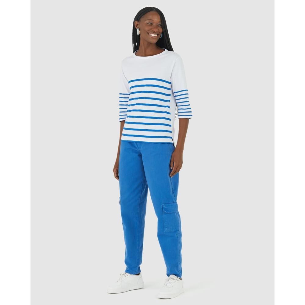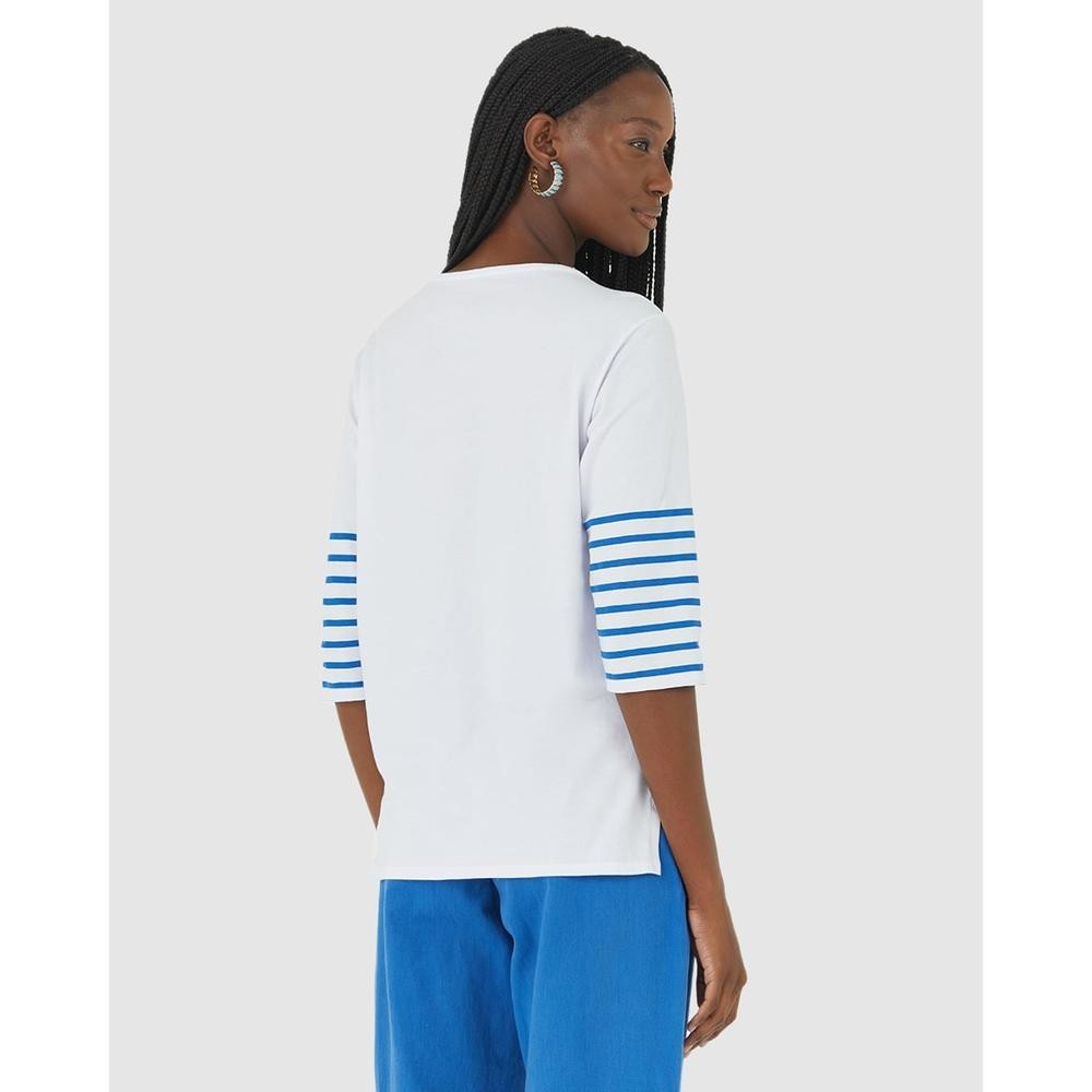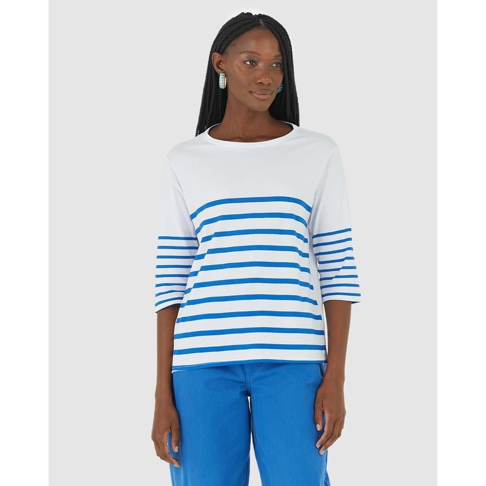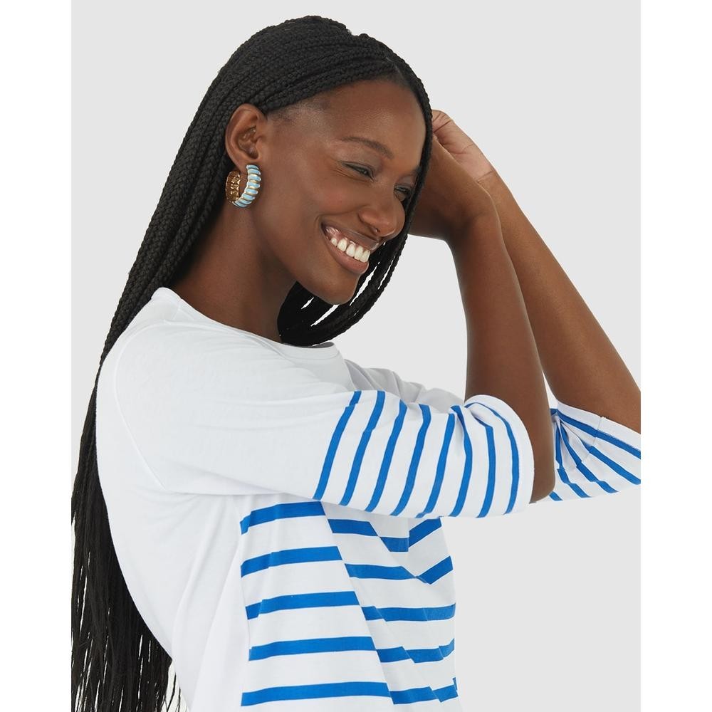 Blusa Listrada Feminina Manga 3/4 Em Algodão