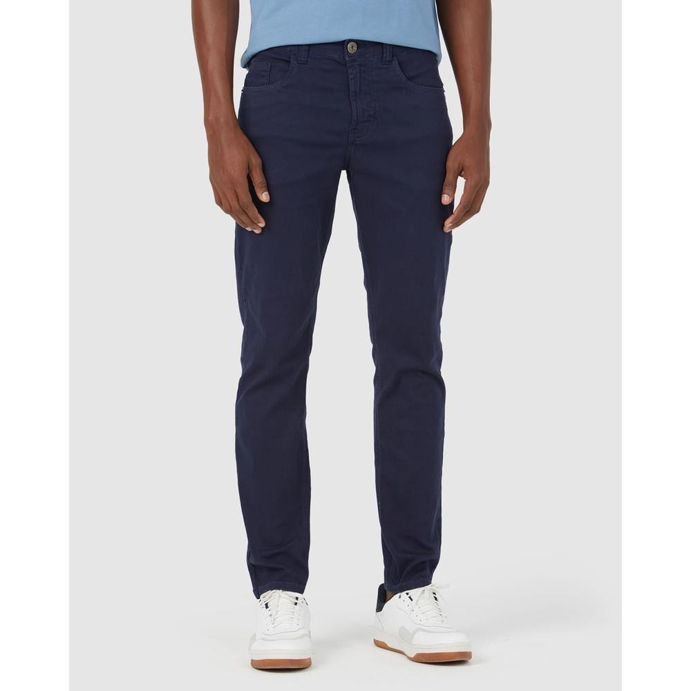 Calça Masculina Slim Cintura Média Em Sarja Com Elastano