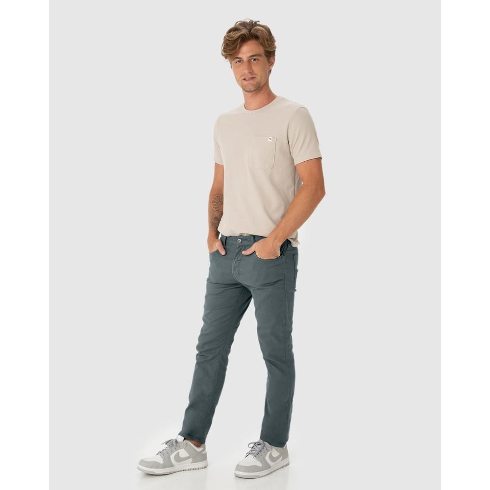 Calça Masculina Slim Cintura Média Em Sarja Com Elastano