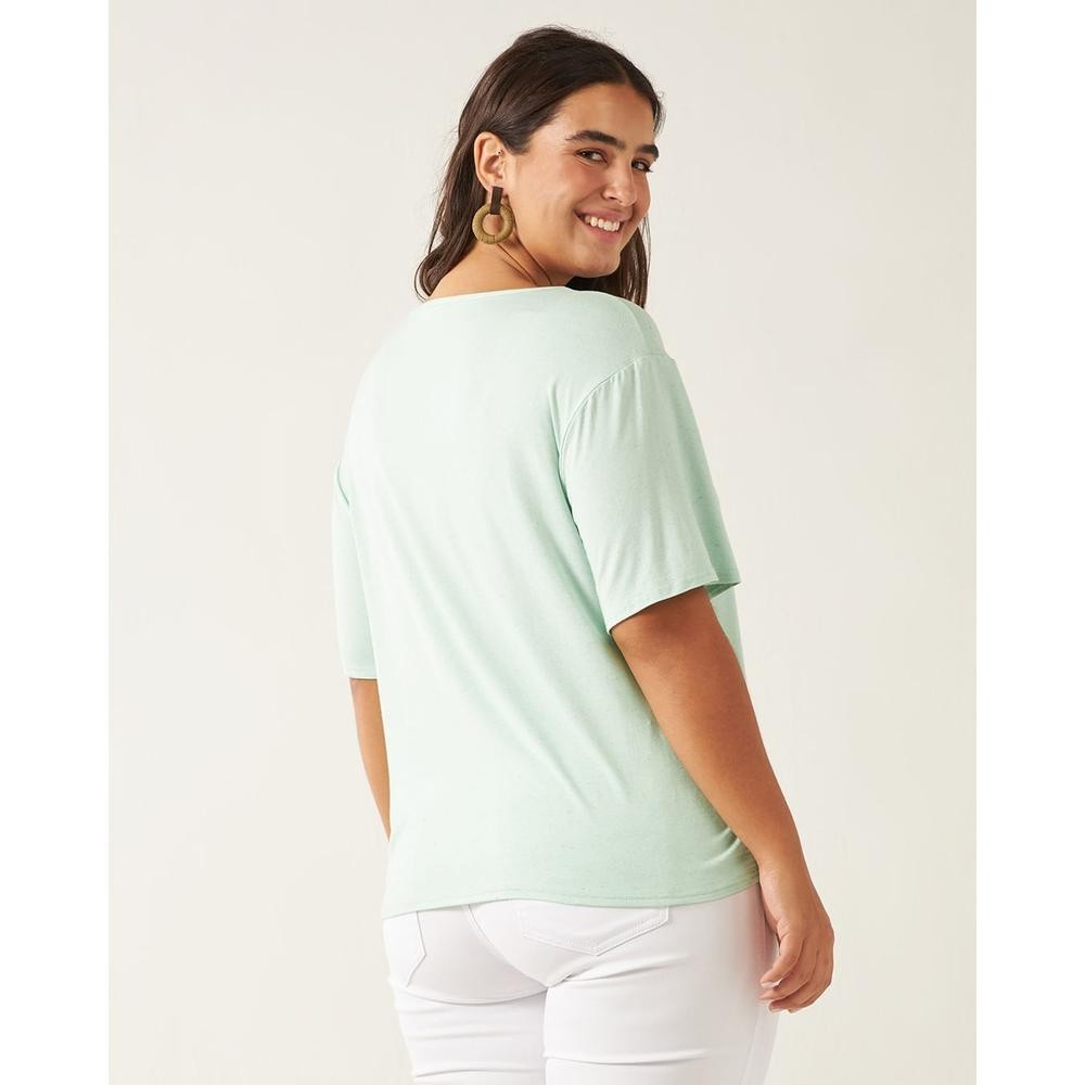 Blusa Básica Feminina Plus Size Decote Redondo Em Viscolinho Stretch