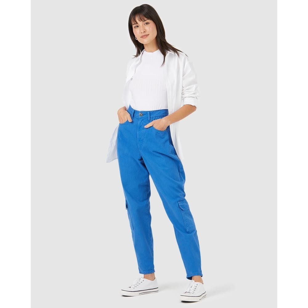 Calça Feminina Slouchy Bolso Lateral Em Sarja 100% Algodão