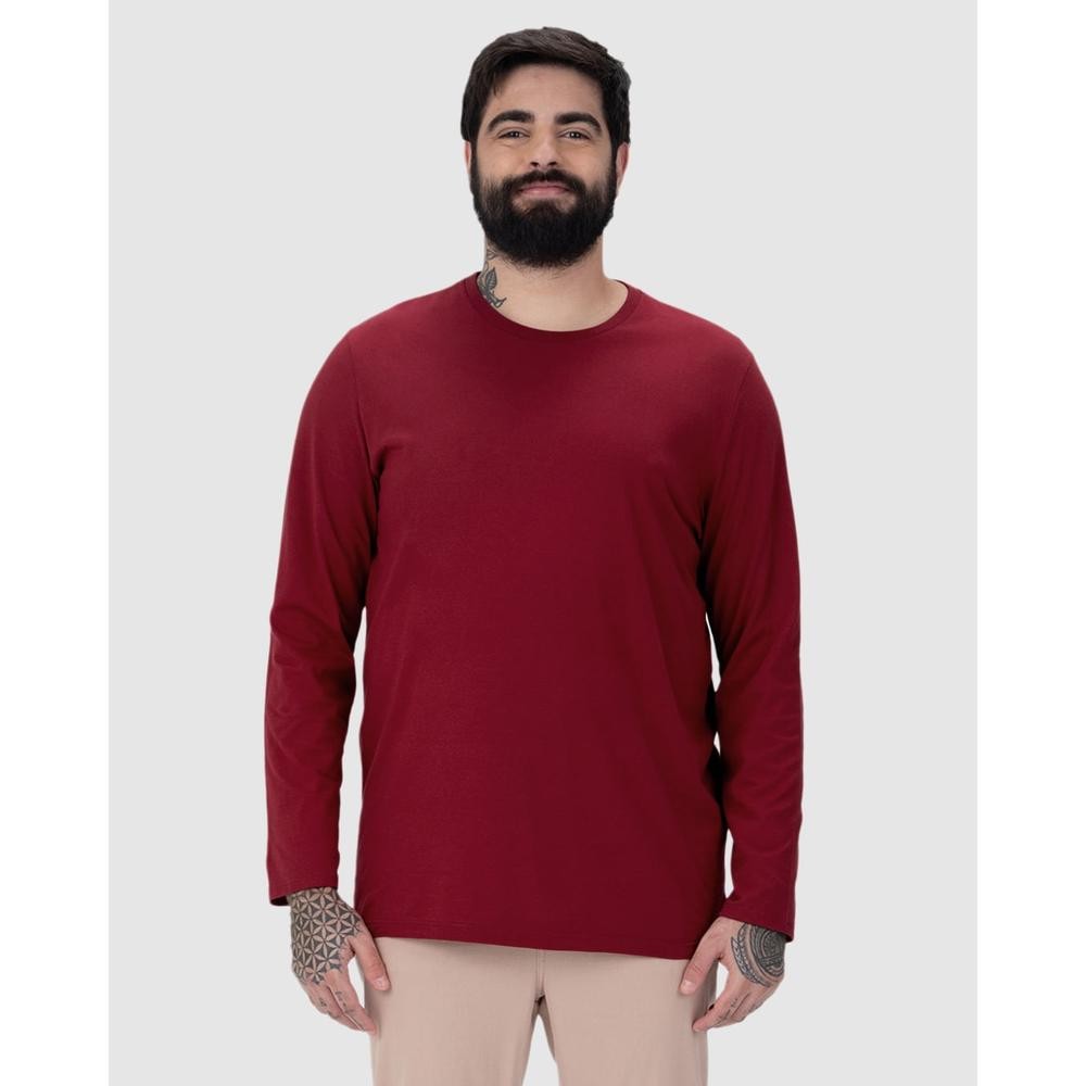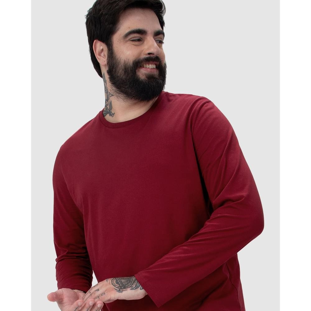 Camiseta Básica Masculina Plus Size Manga Longa Em Algodão