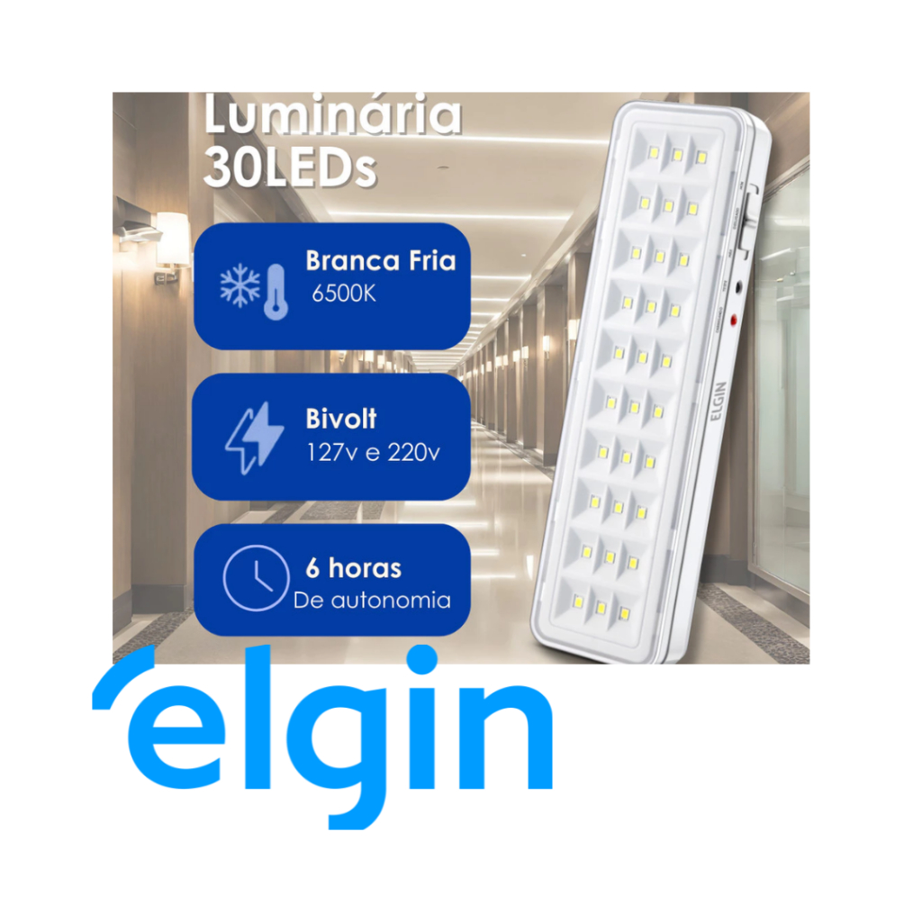 3 Luminárias de Emergência 30 Leds Bivolt 6500K Branco Frio Elgin