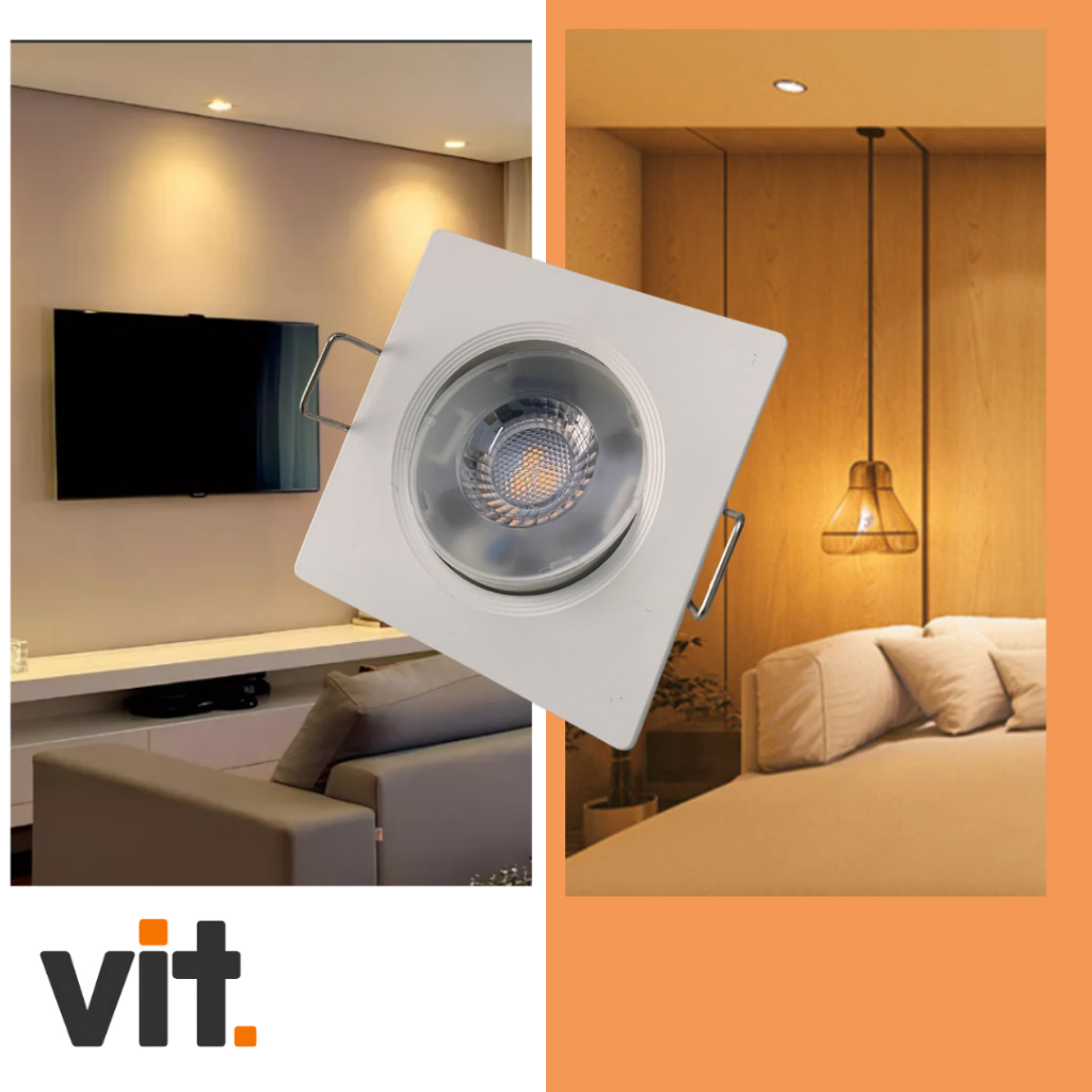 Kit 5 Spots LED Embutir 3W Quadrado 3000K Luz Quente