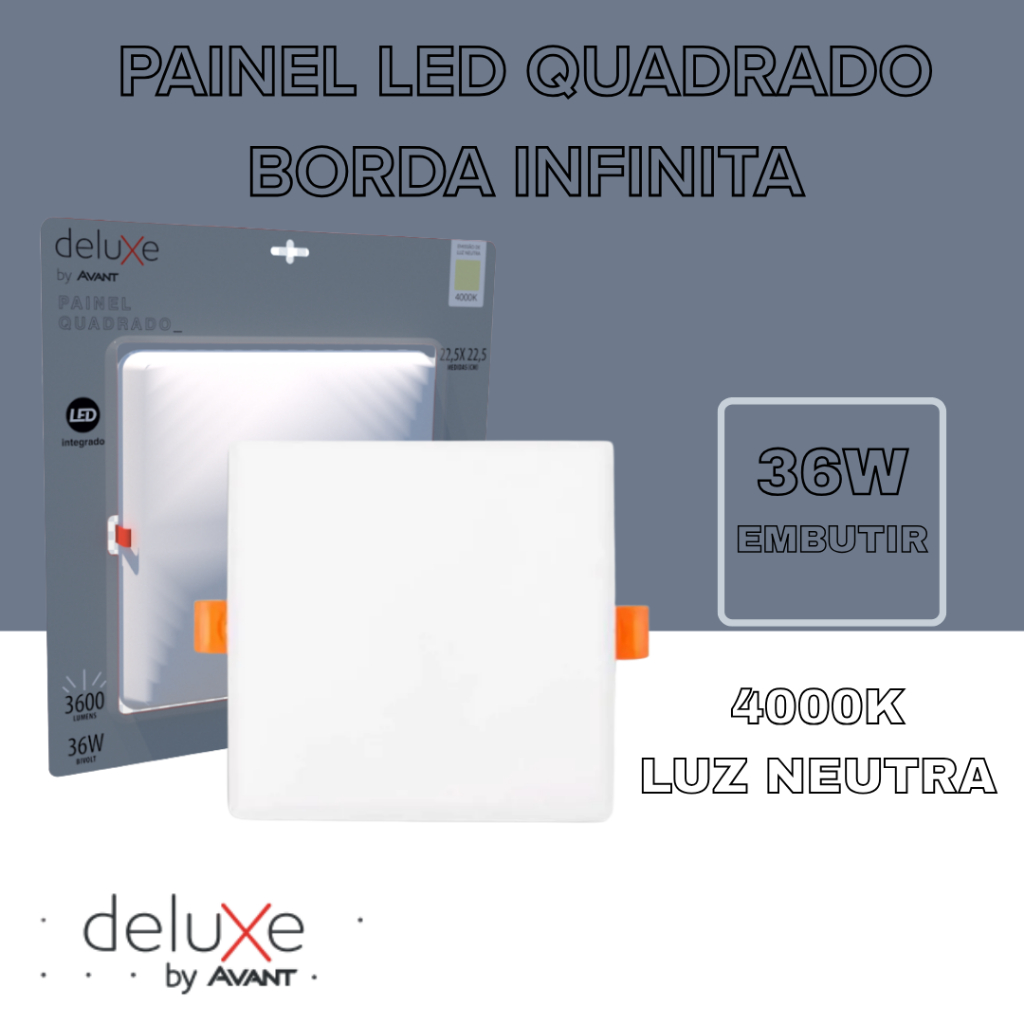 Kit 10 Plafon/Painel LED Quadrado 36W Borda Infinita Embutir 4000K Luz Neutra Bivolt Avant