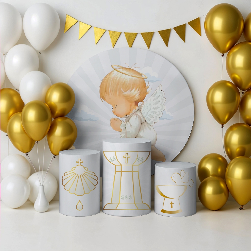Capas Painel Redondo Trio de Cilindro Batismo Batizado