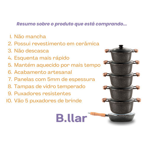 Jogo De Panelas Com Frigideira Cerâmica Antiaderrente 6 Peça