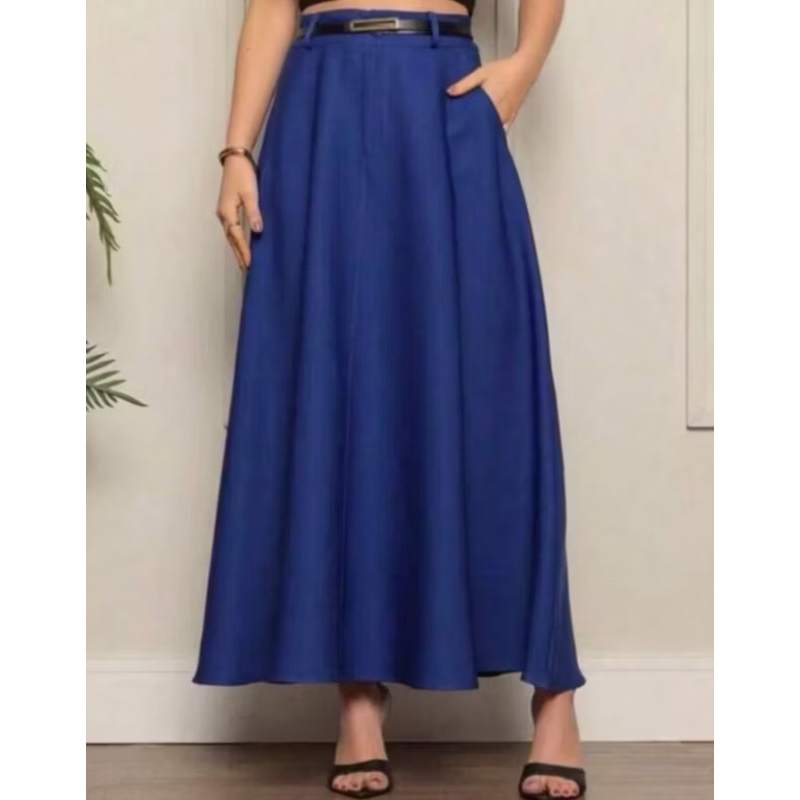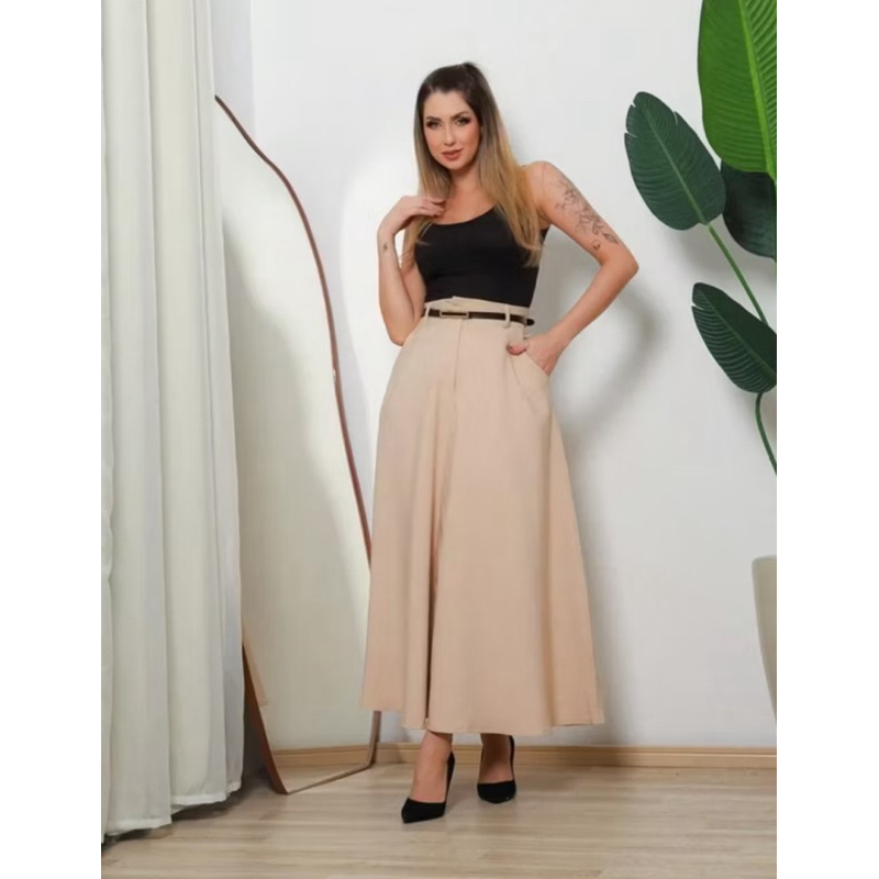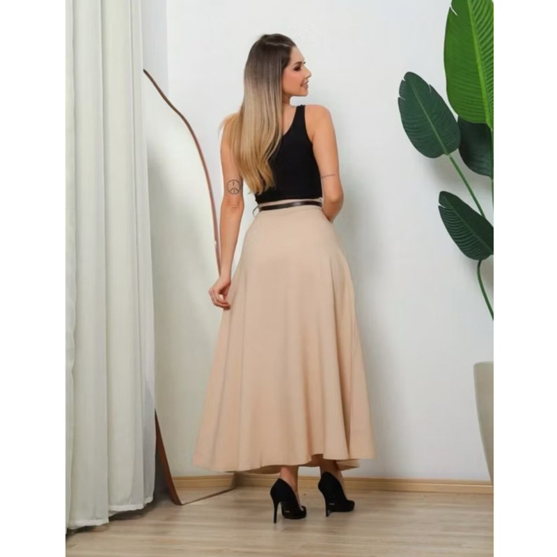 Saia Longa Rodada Feminina Alfaiataria Moda Evangélica Casual Básica Inverno Cintura Alta Elegante Tendência